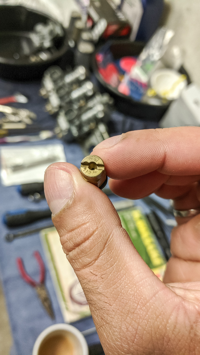 The jet on-top of the pilot jet (un-marked, stubby) looks like this after cleaning: