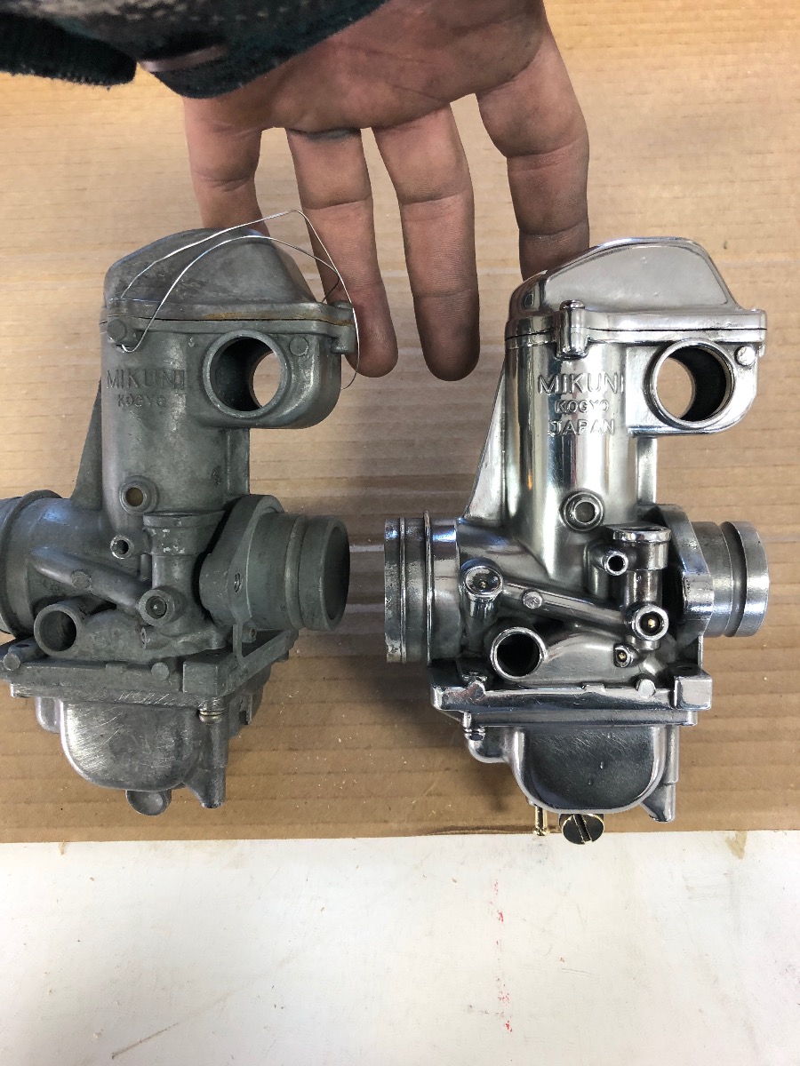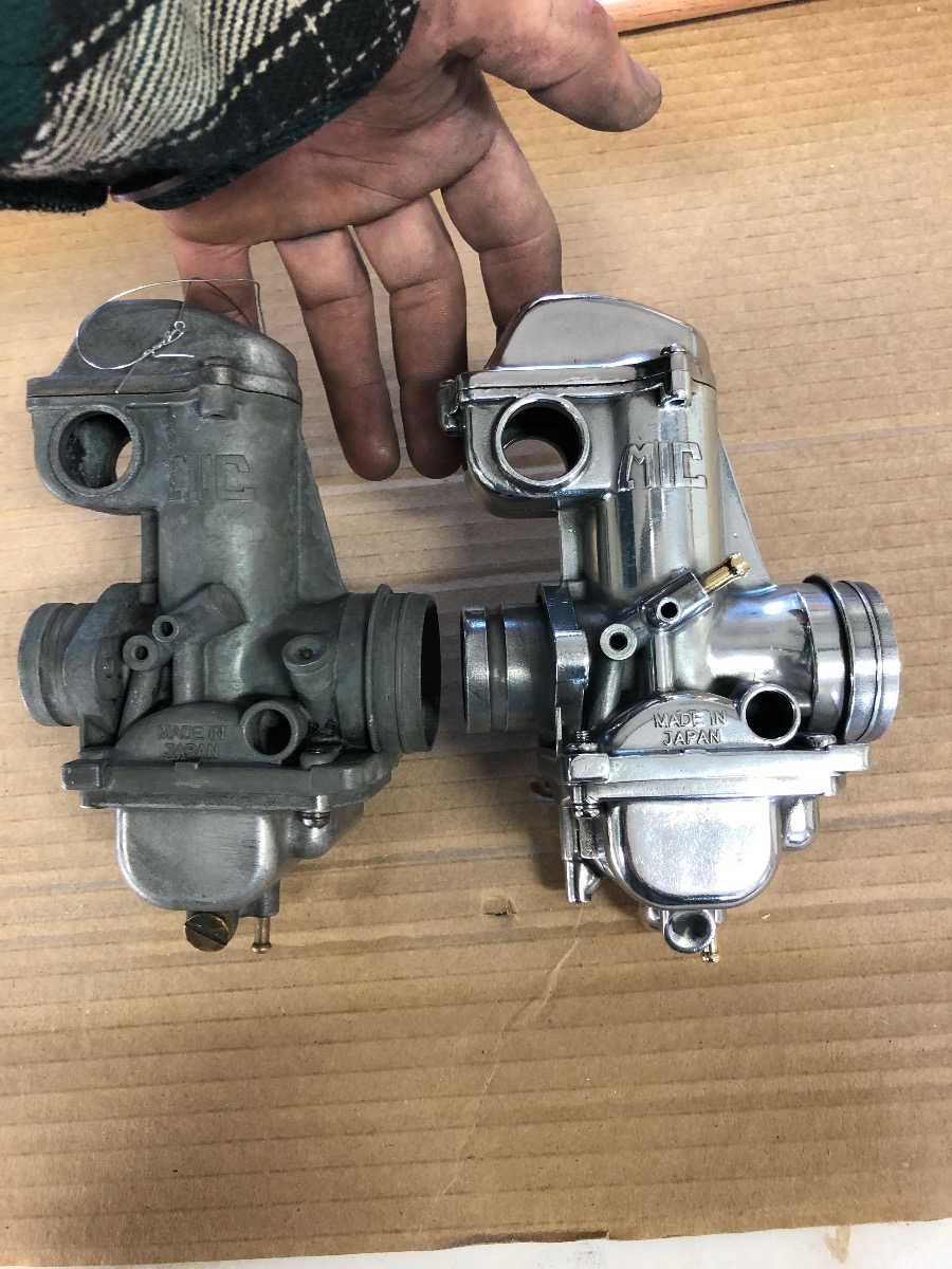 Nice shovel Kawie ! thanks for the compliments as well everyone.I got one carb close to ready for sonic cleaning, guess which one? man these castings are rough they won't get as shiny as some parts but they are closer to cool !