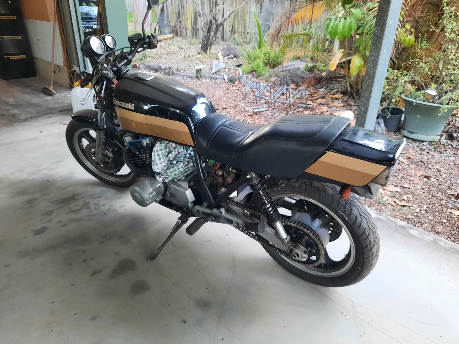 Well that took longer than expected but I got the rego plate last Friday and screwed it on Saturday morning. A couple weeks of late nights etc.Owned this one for 25 years, and its been in resting mode for 15 years.It's been serviced, carbs done, new coils, leads, plugs. Tyres and brake done last week.Rode probably 250kms plus on its first day out no problems.Have a few more photos coming.