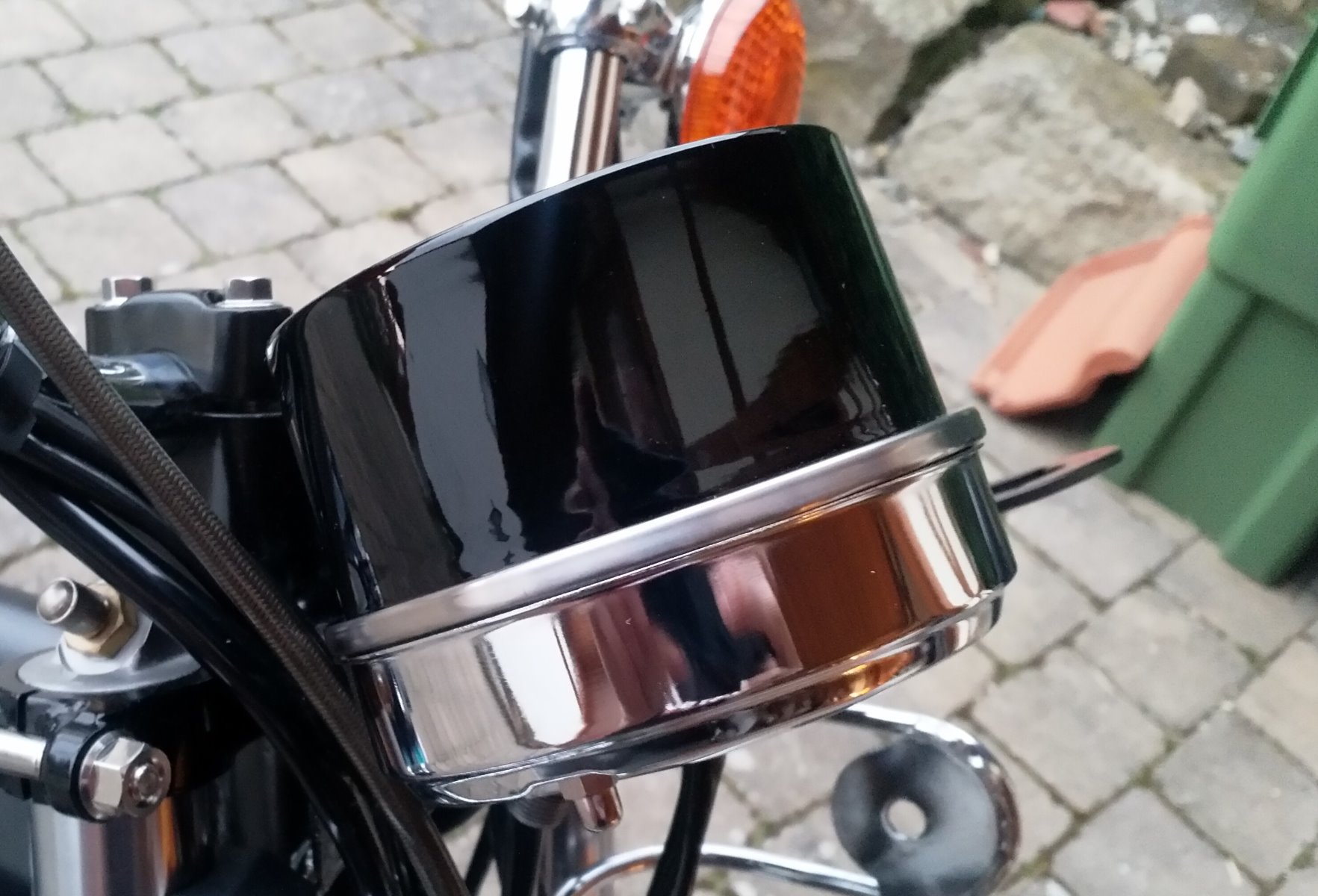 Put the tacho back together today to see how it looks. Still need to crimp the ring (have a board with a 105 mm hole and a large hose clamp - we'll see how that goes tomorrow). Speedo still needs a bit of cleaning (100 m rings are pretty yellow).