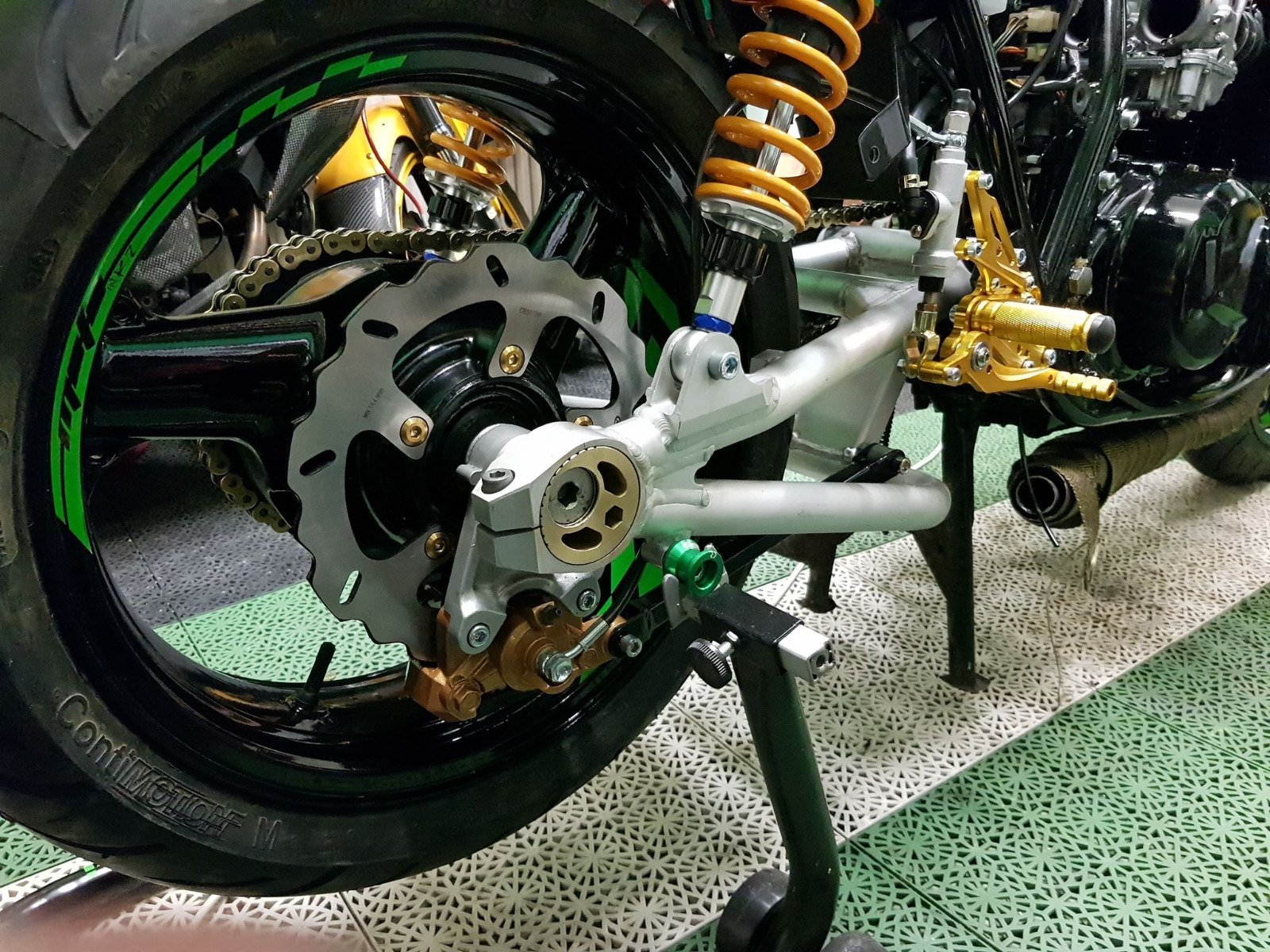 The zrx swingarm i got from crooober for a cheap price, thr fork from germany and the wheels i bought here in Sweden.