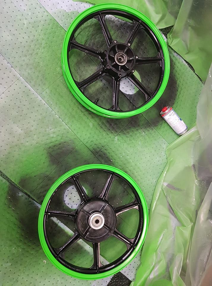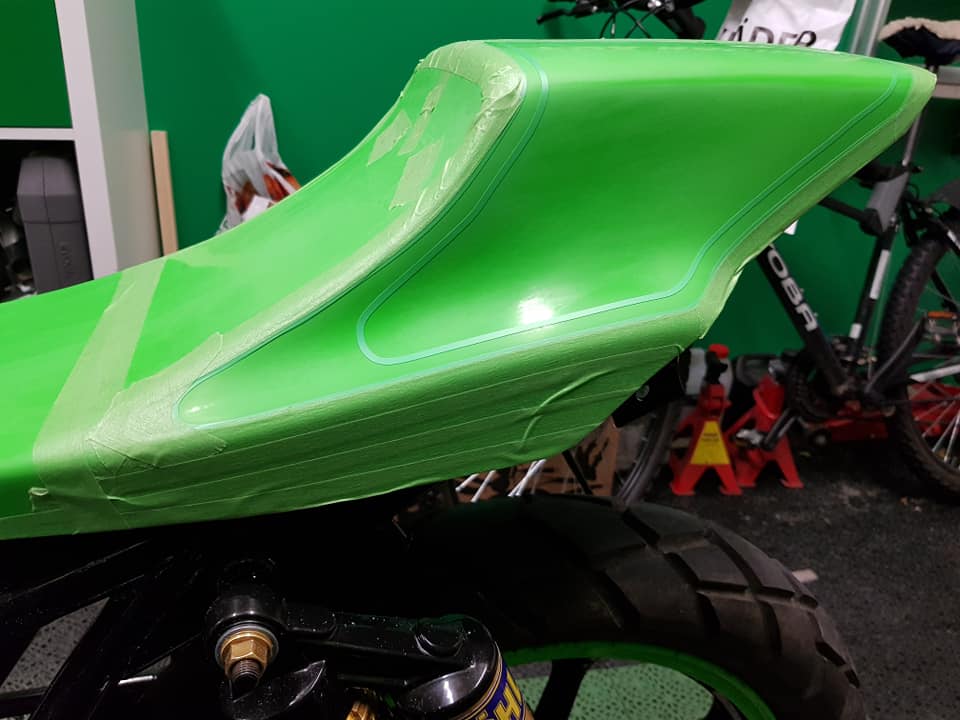 In January it was time for the paintjob. First i painted it kawasaki 777limegreen.