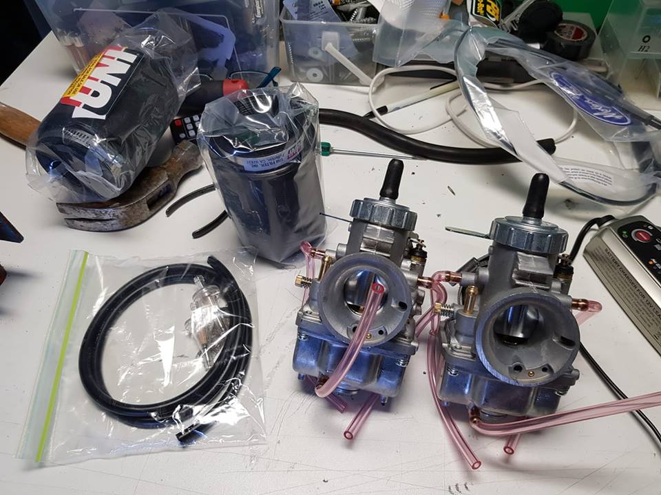 The Bike didn´t run so good when i bought it and i suspect it was the carbs so i bought two new mikuni complete with manifolds and throttle cables.