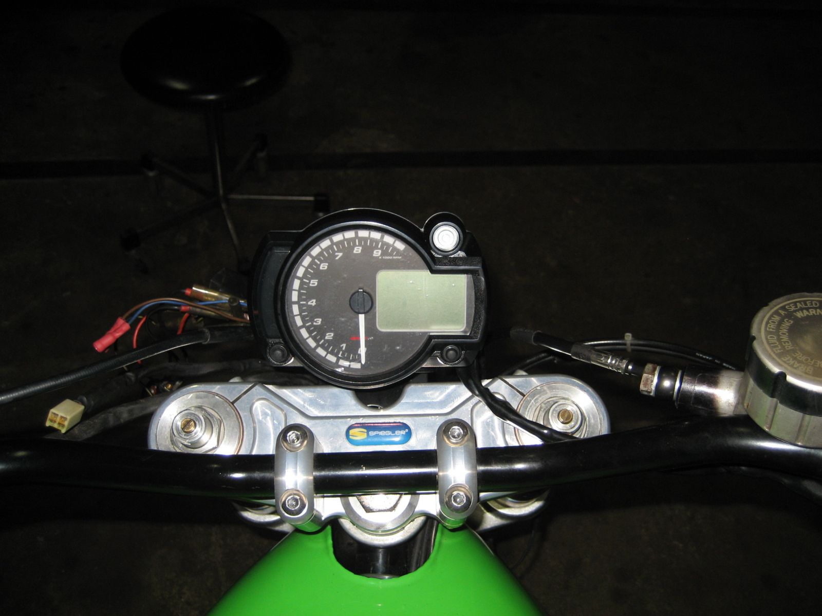 For the handlebar mounts I just bought a set of stock Kawasaki bar clamps and used them on the bottom and bolted though the upper tree.
