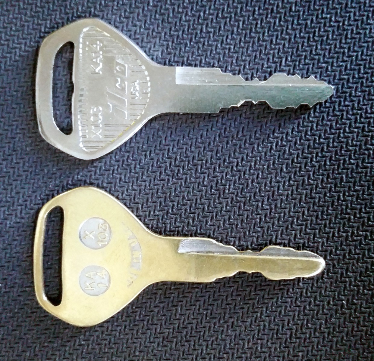 This was a one owner bike. He was a sheriff whose nickname was 'Two Guns". That name shall be passed on to this bike (of course!)He rode the bike until 2008 when he was in his 70s. He passed about a year ago and the family decided to take the bike off the back patio and put it up for sale. I just picked it up last week. It seems pretty complete, and apparently 'ran fine when it was parked'. We shall see. Seat, bar, bags, cowl and tank have been removed. Front blinkers and headlight removed, ignition switch was pulled to get code and a new set of keys were just cut. That made a huge difference in ignition fitment. The old worn key would work with a lot of jiggling, the new one slides in and turns like butter!