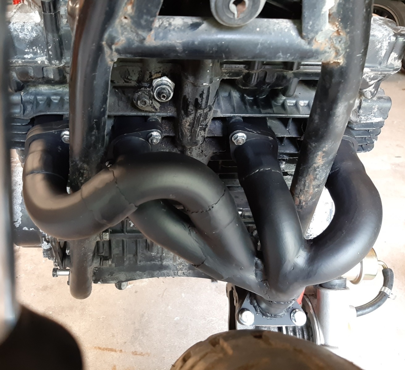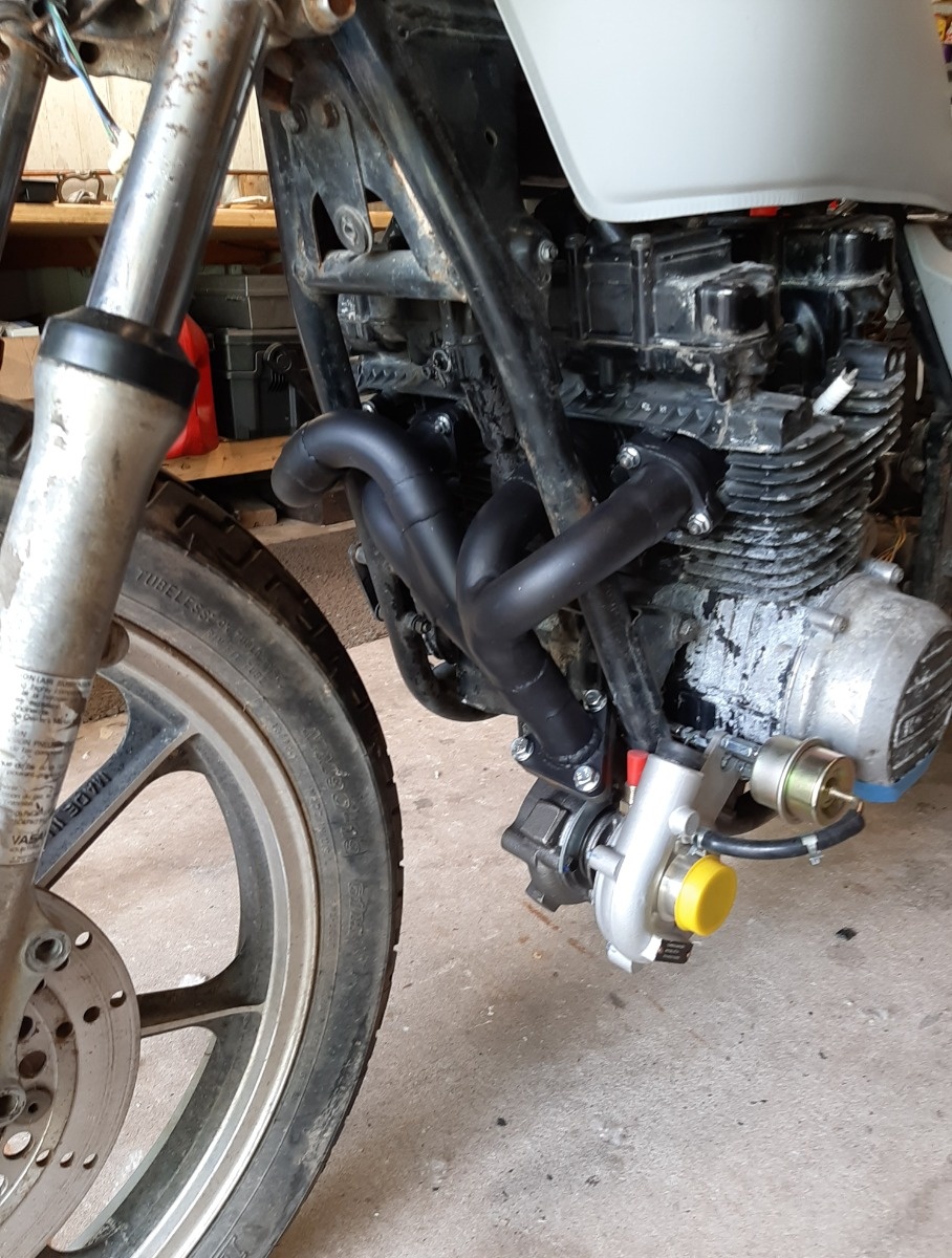 Yes, pipes should be of equal lengths dor.proper tuning; I was working with a tight space limitation.... compressed front end while jigging everything up to make sure front wheel won't touch and Turbo has to be where it is to make sense. My first time, it's a 8/10 for functionality and aesthetic appeal. Can't be any worse than the old ATC log manifold.on the Z1R.....
