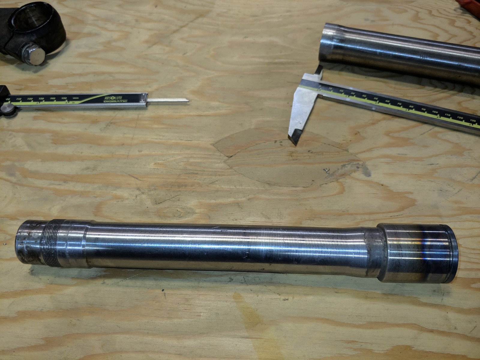 Made a bushing insert like Leon did here . I kept mine above the top of the triple tree for a better weld though (compensates for my shitting welding)