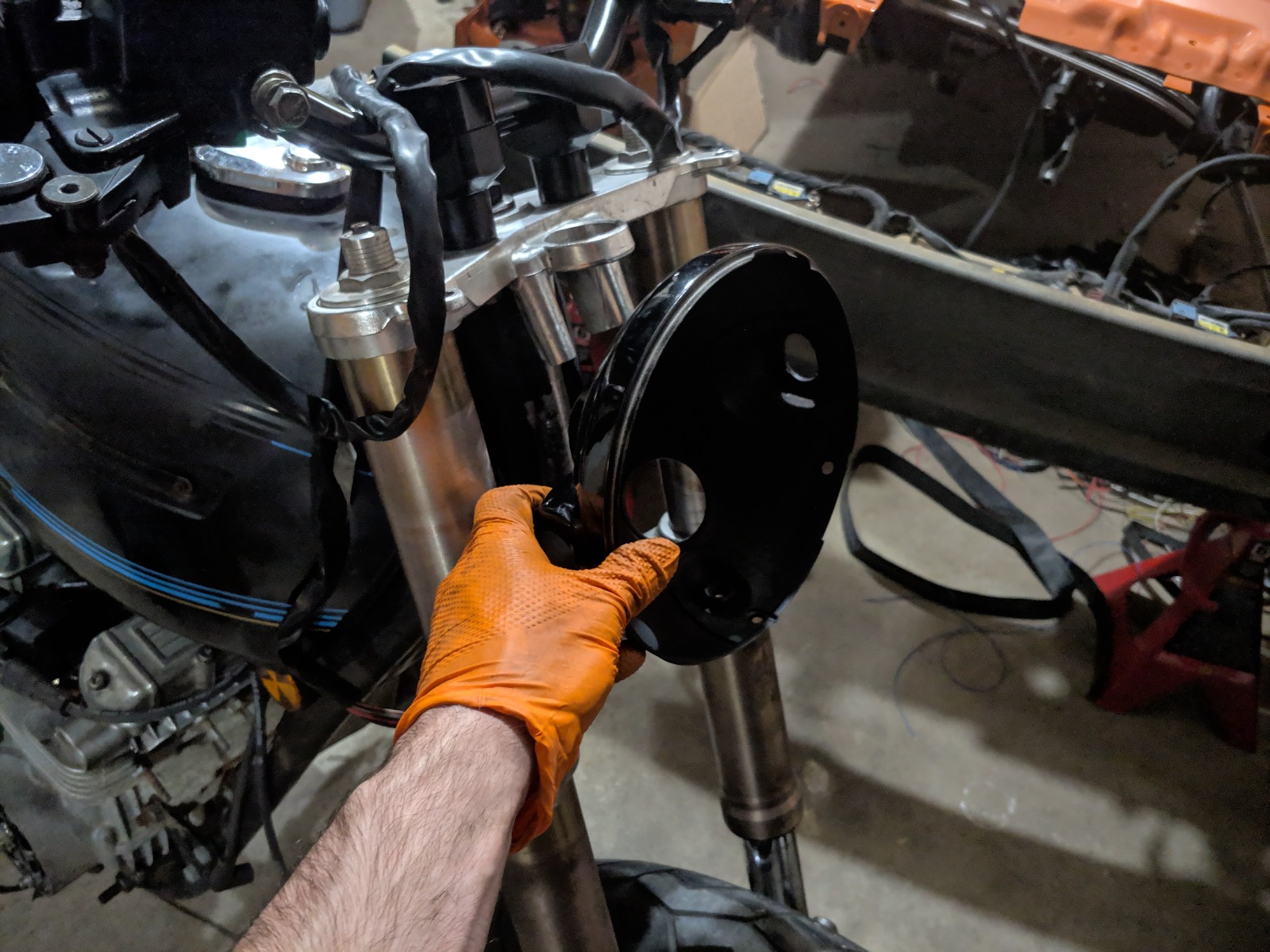 Chopping off the end of the zx9r steering stem and swapping it onto the kz stem