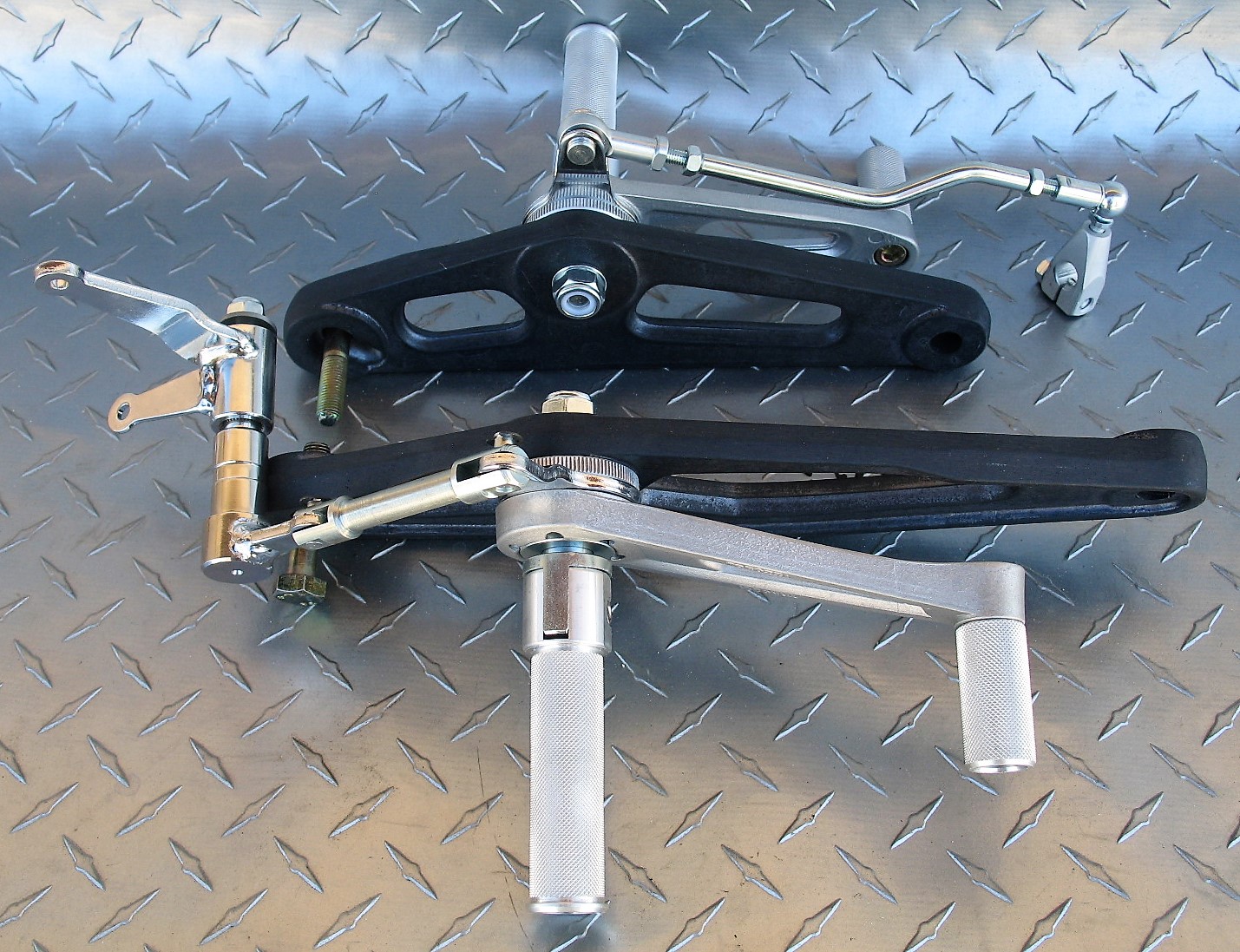 The 650 specific rear sets for the single bolt footpeg models are ugly (pic from American Classix)