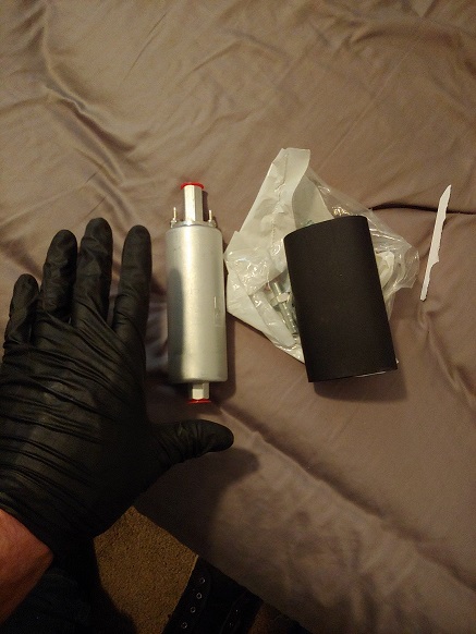 Ordered some new fuel system components as the intank style pump was a pain. I bought a Walbro GSL393 (which is what the 750turbo guys use as a replacement) as well as some other fittings and filters to finalize the mounting of it all: fuel pump, pre (30 micron) and post filter (10micron), flex fuel sensor. The hardest thing to find are some 90deg fittings. ebay had some nice swivel m10x1 to 5/16 barb 90deg fittings, so i hope those hold up as