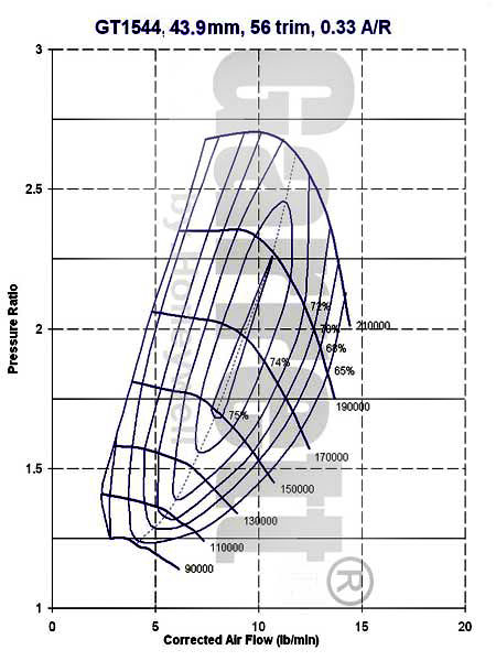 I did a quick calculation for the compressor map... and it looks pretty good! i assumed boost would build up to 14psi at 4000krpm and stay there till 11,000.