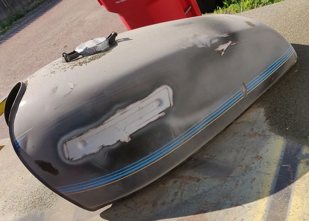 I made progress on the gas tank as well. I started by removing the emblem bracket things, sandblasting and used acid etch weld through primer before welding them back on: