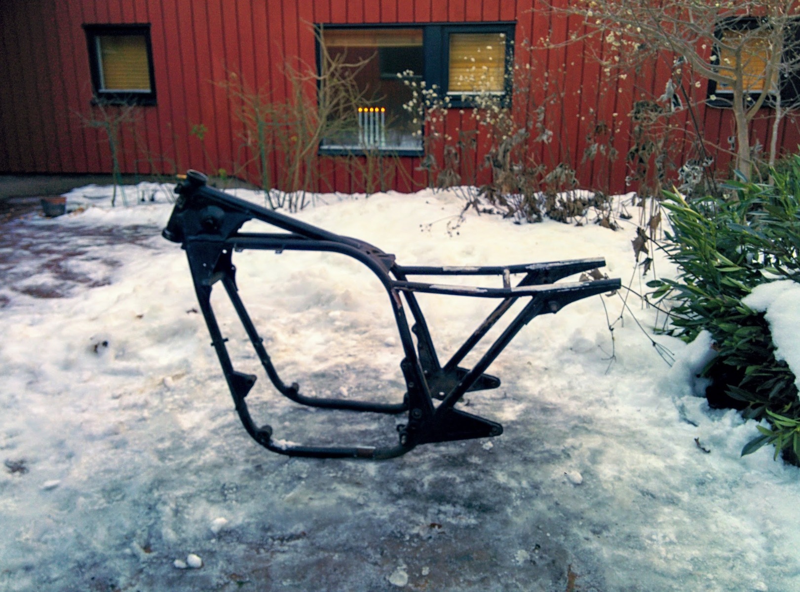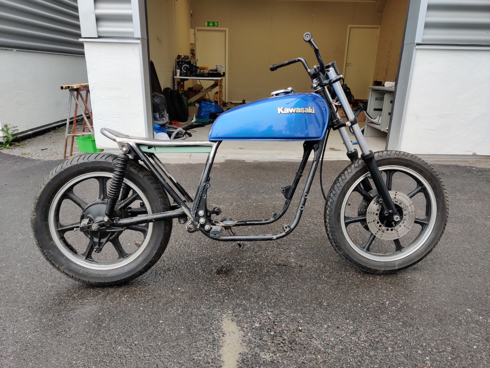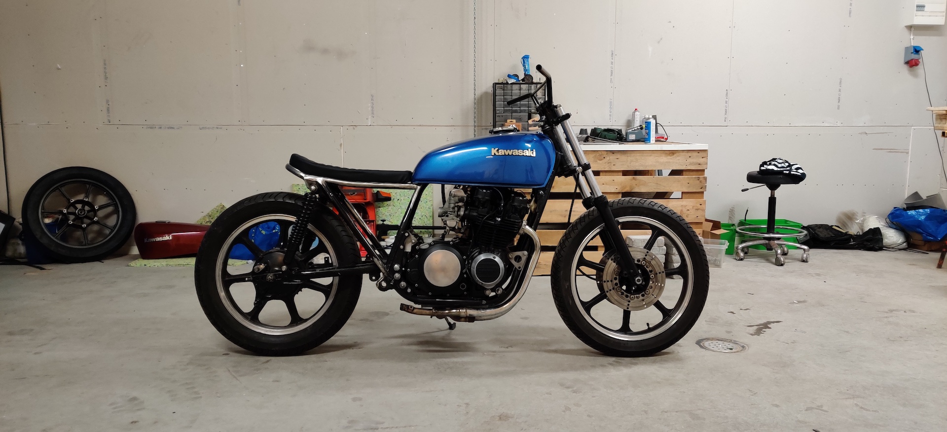 Since I started the goal has been to have same size wheels to get that nice symmetric look. This has become something of a must have for me and since the project have been on and off for so long I feel no stress getting it on the road, instead I feel good about things taking time. I now have a permanent shop space and even tough I have owned 5 bikes in three different countries I don't have a licence for Sweden yet so no stress getting it on the road.