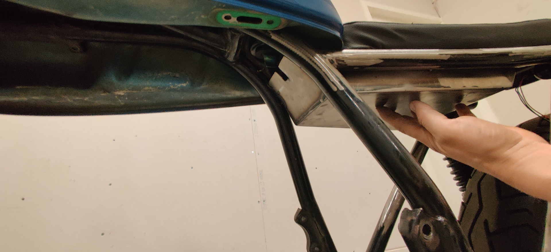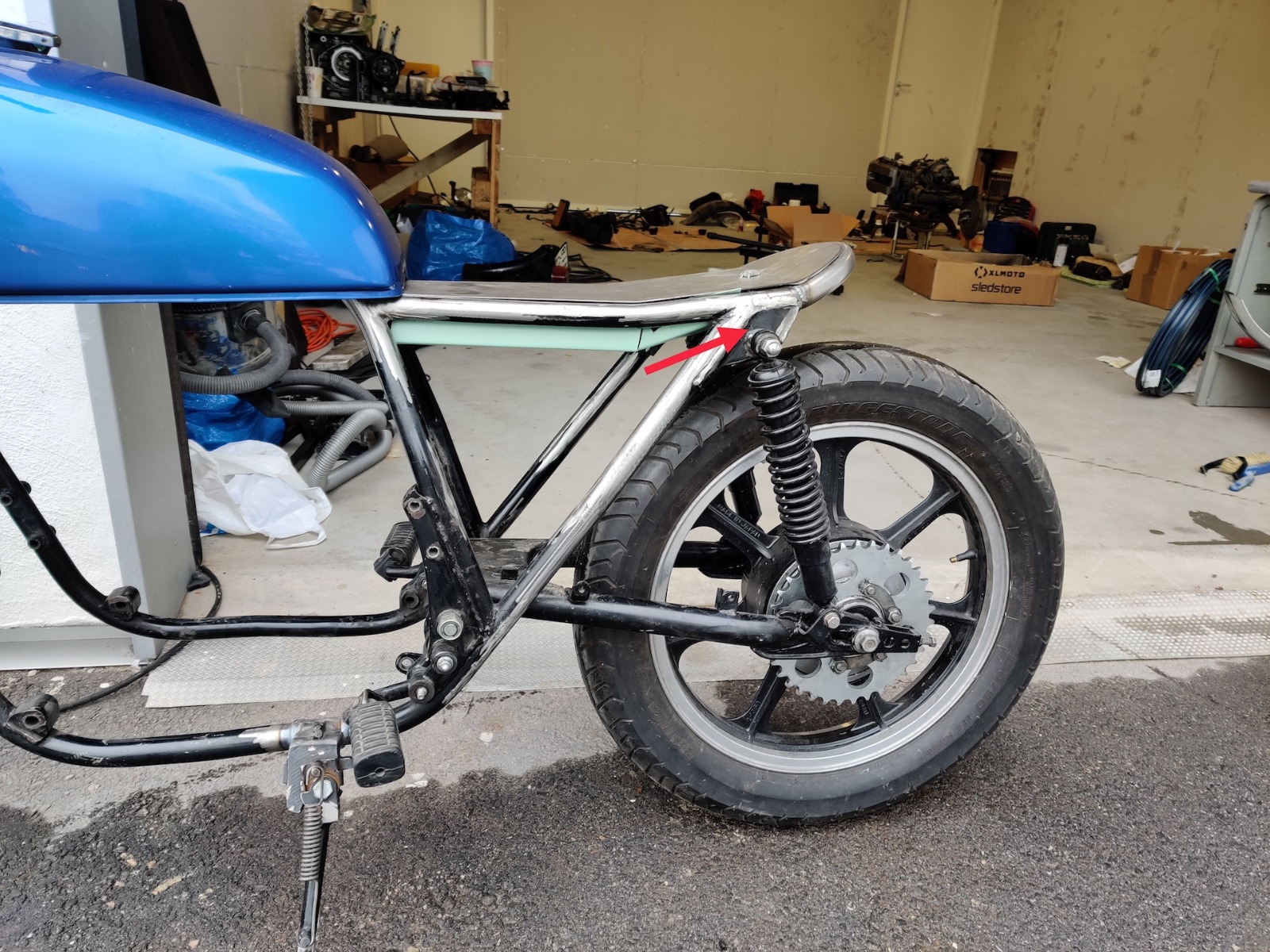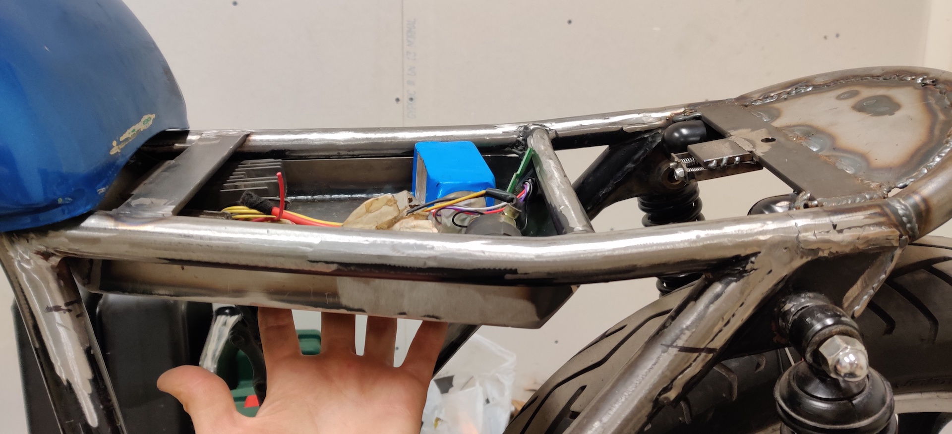 2019 - Moved in to a new garage spot and slapped the frame together and started welding up a new loop in the back, made a seat pan and cleaned up the frame as good as i could.