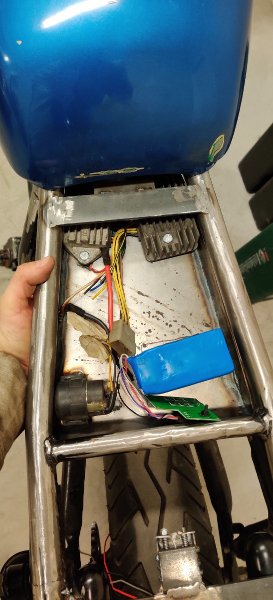 2019 - Kept working on the box for the battery. Bought a Shorai battery clone from Swedish harbor freight (Biltema), and cracked it open to save space.