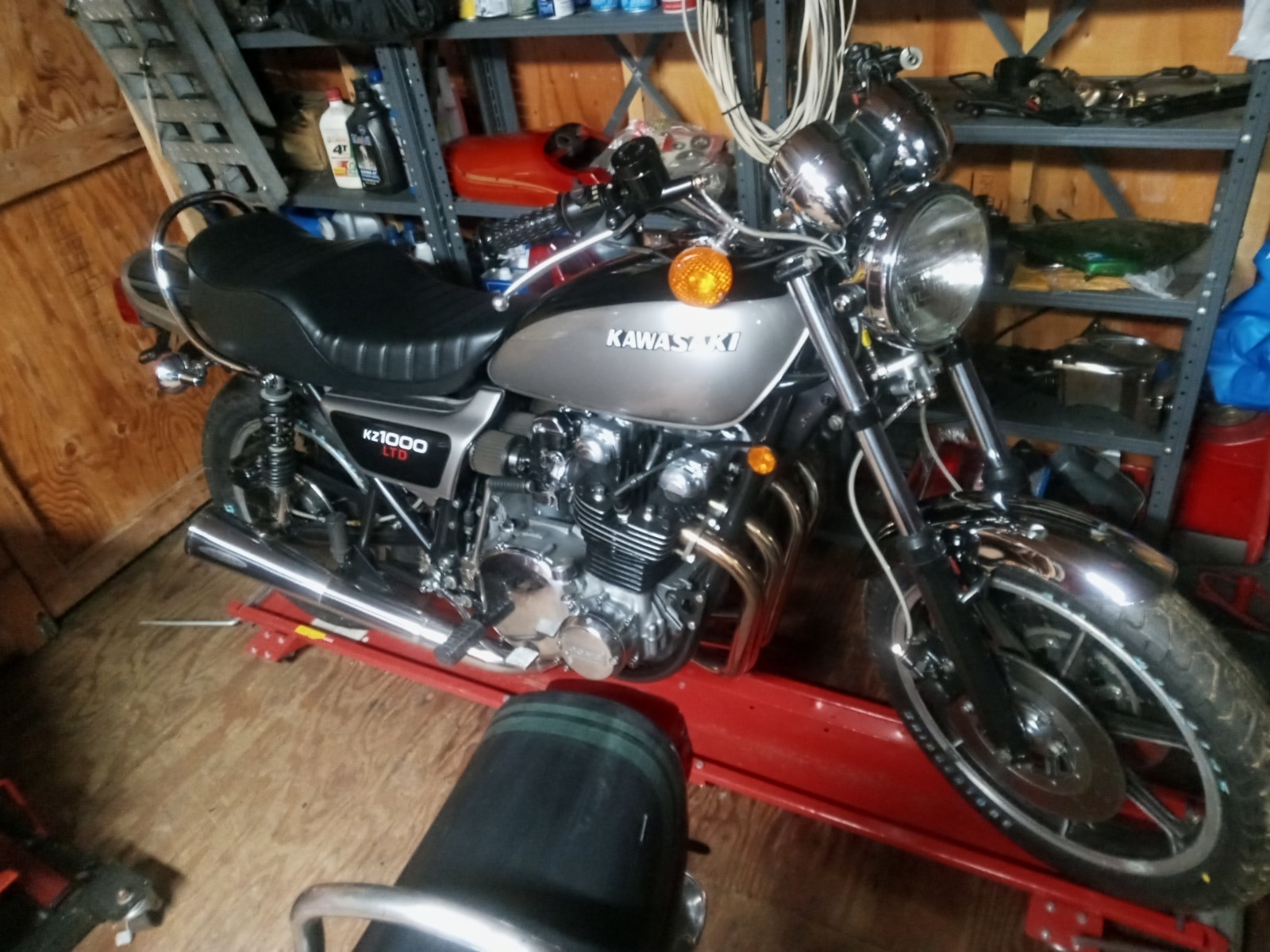 77 ltd1000 80 ltd1000 78kz1000a ,02 red zrx 12r, 94 cb1000 big one ,03 valkyrie (my couch) 65 olds 442