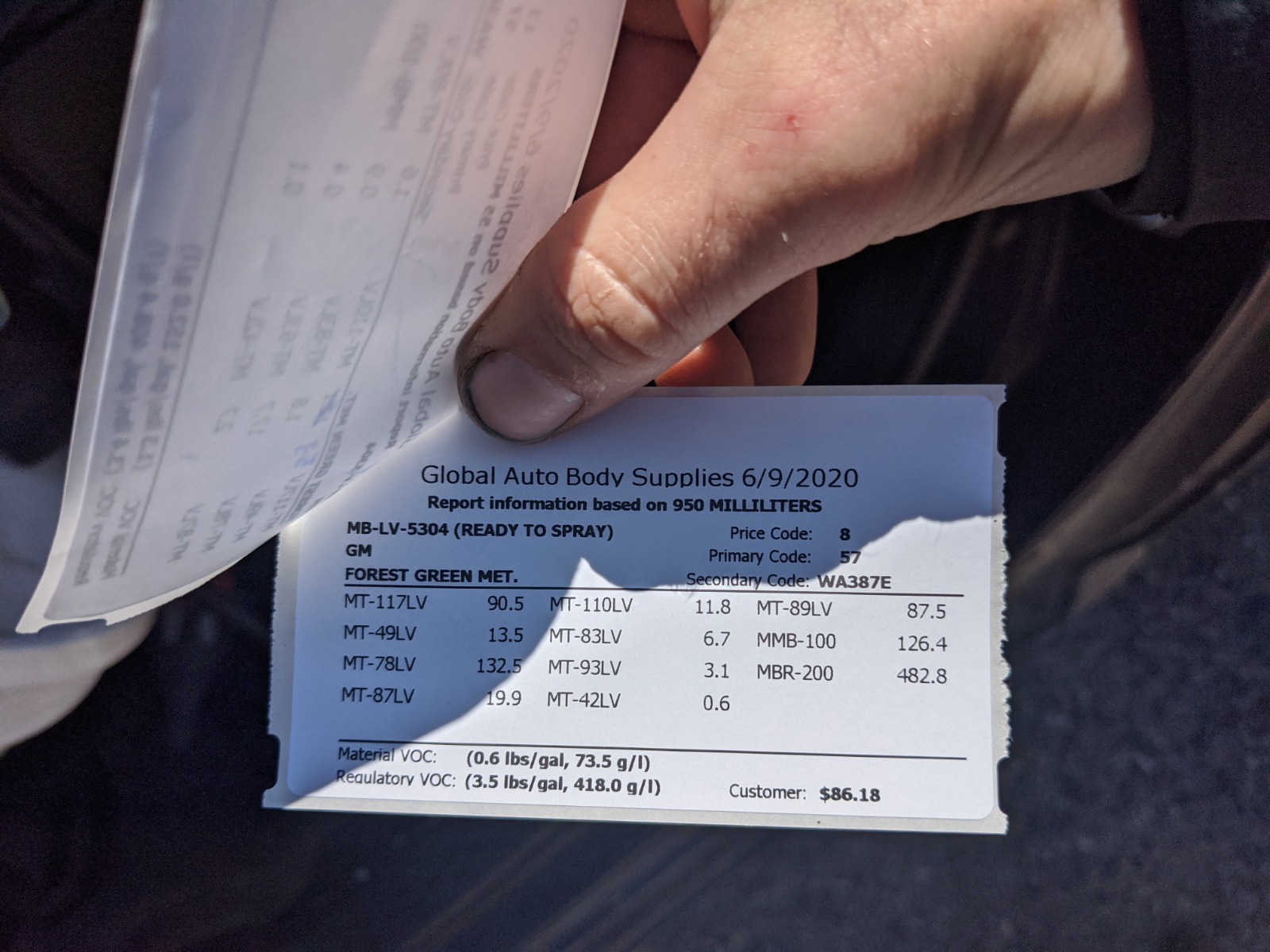 Went to the paint shop yesterday to see what they could come up with. It took them all day, bug they came up with a paint that is damn near indistinguishable from factory. They pulled some blue out a GM paint I believe. Paint Cade's attached for anyone looking for a starting point on Luminous Green.