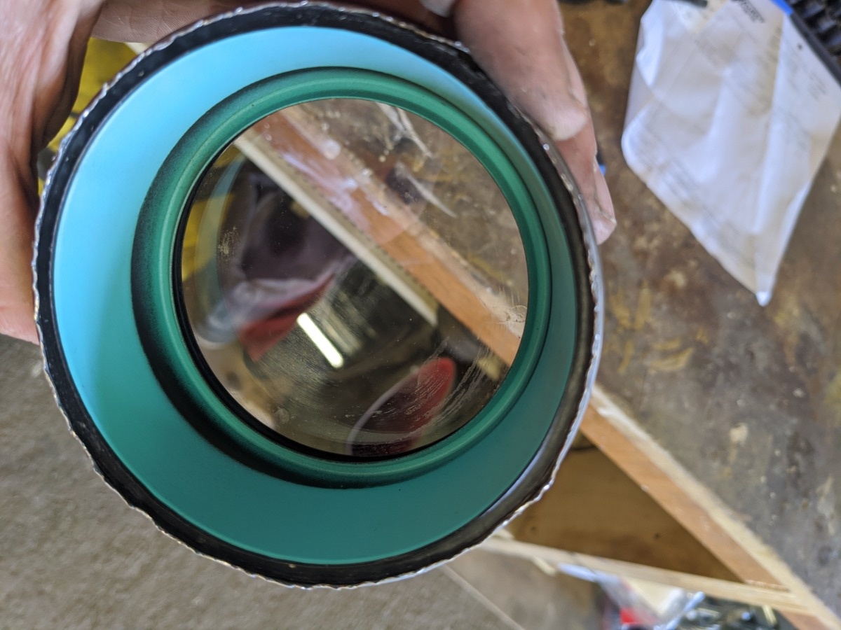 It's the correct color, yes, but painted poorly by the factory somehow. You can def in that photo that there's a black ring near the top where it shouldn't be. Hard to really describe or see in the photo, but that blue/green is inconsistent all the way around, so you end up seeing only some of it when assembled, making it appear like something isn't seated correctly.