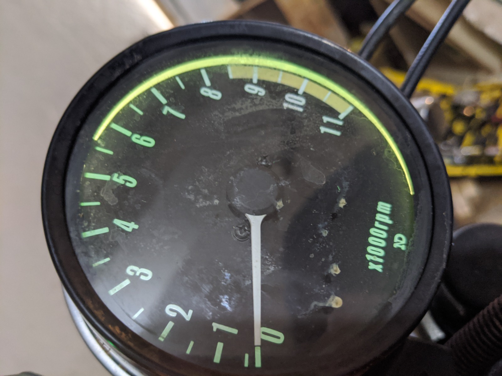 The original 1977 KZ650 gauges were also black around the edge. They changed to teal in 1978. Below is a picture of my original KZ650 speedometer that I took several years ago. Ed