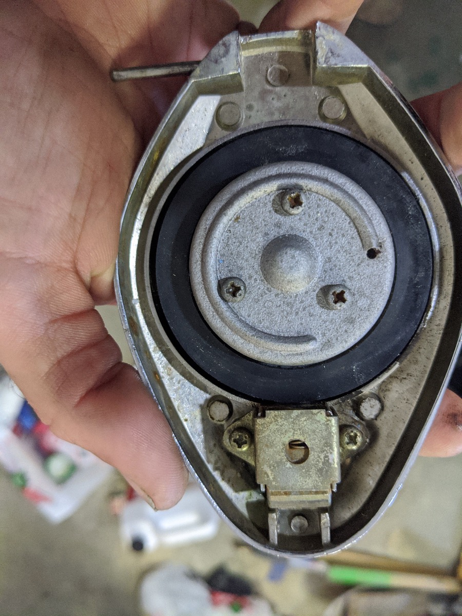 The gas cap was disgusting looking on the inside. Very rusty. Pulled in apart and soaked it in metal rescue. That stuff is amazing. Couple hours later, good as new.