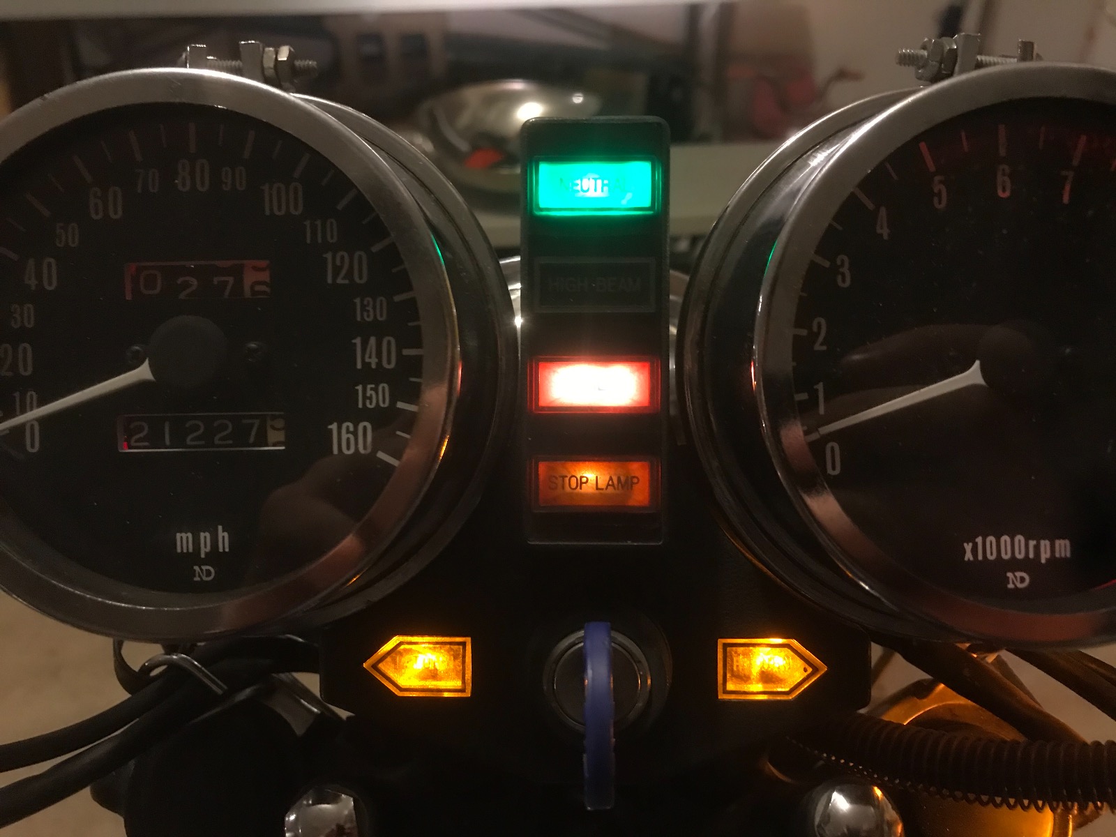 Today was rainy and I just received a shipment of new LEDs for my tach/speedo gauges and the neutral/high/oil/brake lights.