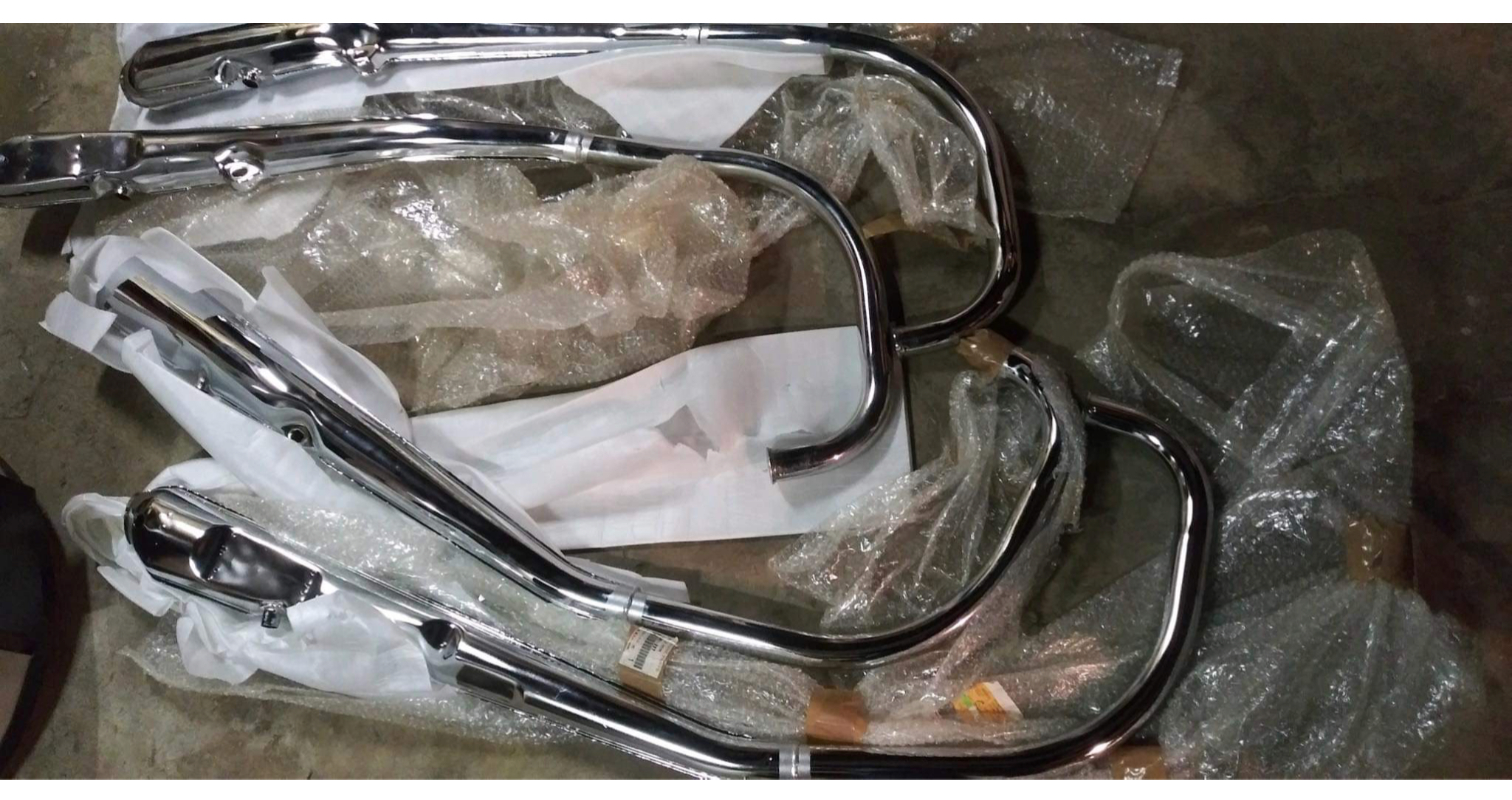 Damn! those never were cheap. I'm not sure when they changed from the yellow tags on service parts, but I think it's probably been ten years ago by now. The number under the muffler assy script 000473-39-45 means suggested retail is $473.45 with a 39% mark up! I wonder how many $ worth I threw away that got scratched during assembly? Never quite got the hang out of polishing scratches out of chrome.(got pretty good at polishing aluminum though)