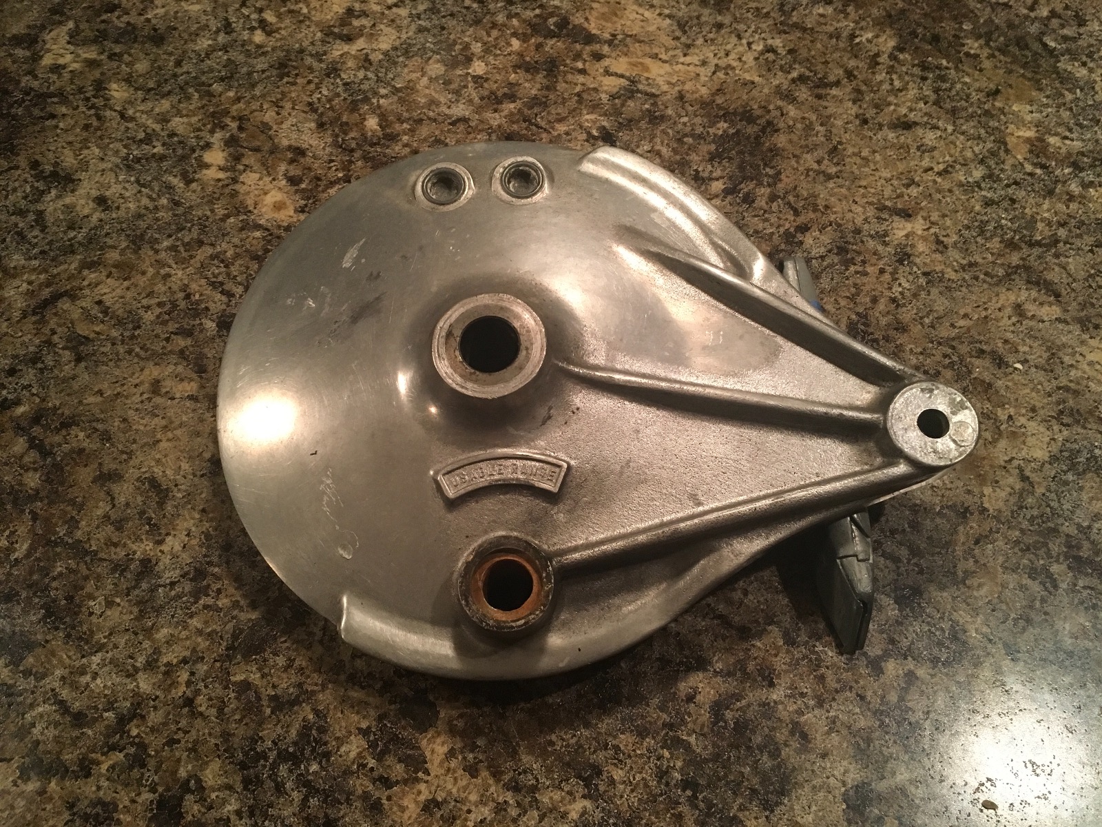 Ok, I’m am really trying to make progress on the project but it seems like a take two steps forward and two steps back. Another appropriate phrase would be I just seem to be spinning my wheels. Here’s my latest hang up. My Kz900 came with a 16” spoked rim, so I’m not sure if the brake plate is correct. Here’s where I started. I bought a polished one.