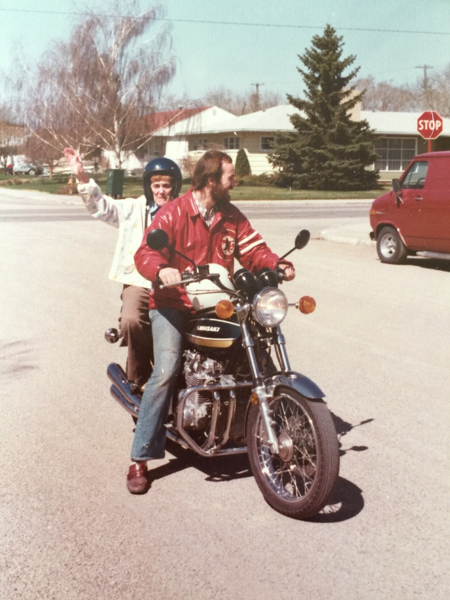 I do have an old photo from the '70's of my Z1B, showing the tread. Here it is. That's my mother on the back. We were just playing around for the photographer...my Dad.