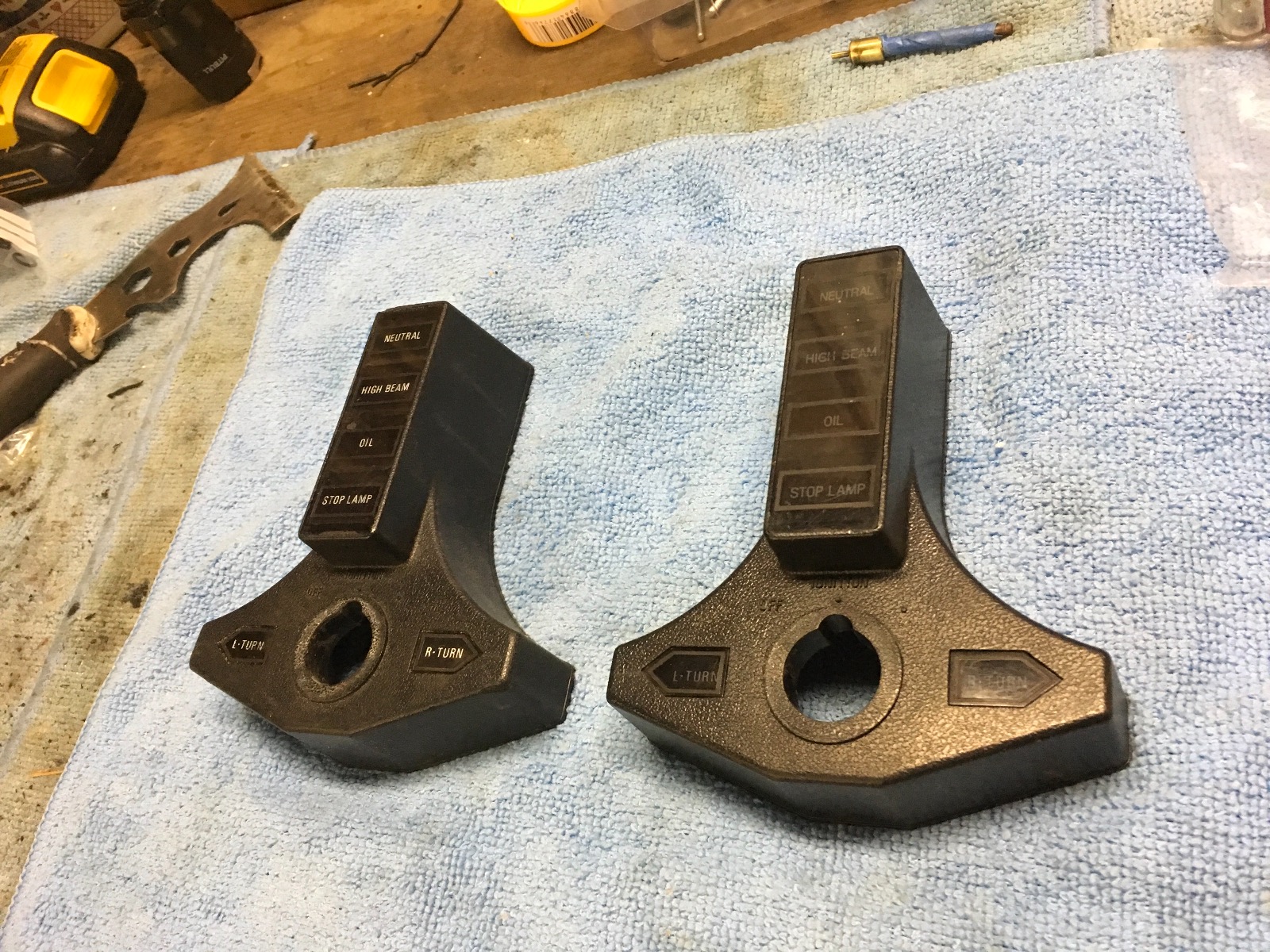 Here’s what I did. Last spring while refreshing the front end of my Kz1000 B2 I went looking for my best idiot light cover. Not thinking I went digging into the stashed Kz900 A4 parts. Now I don’t know which is the correct cover for my 900.