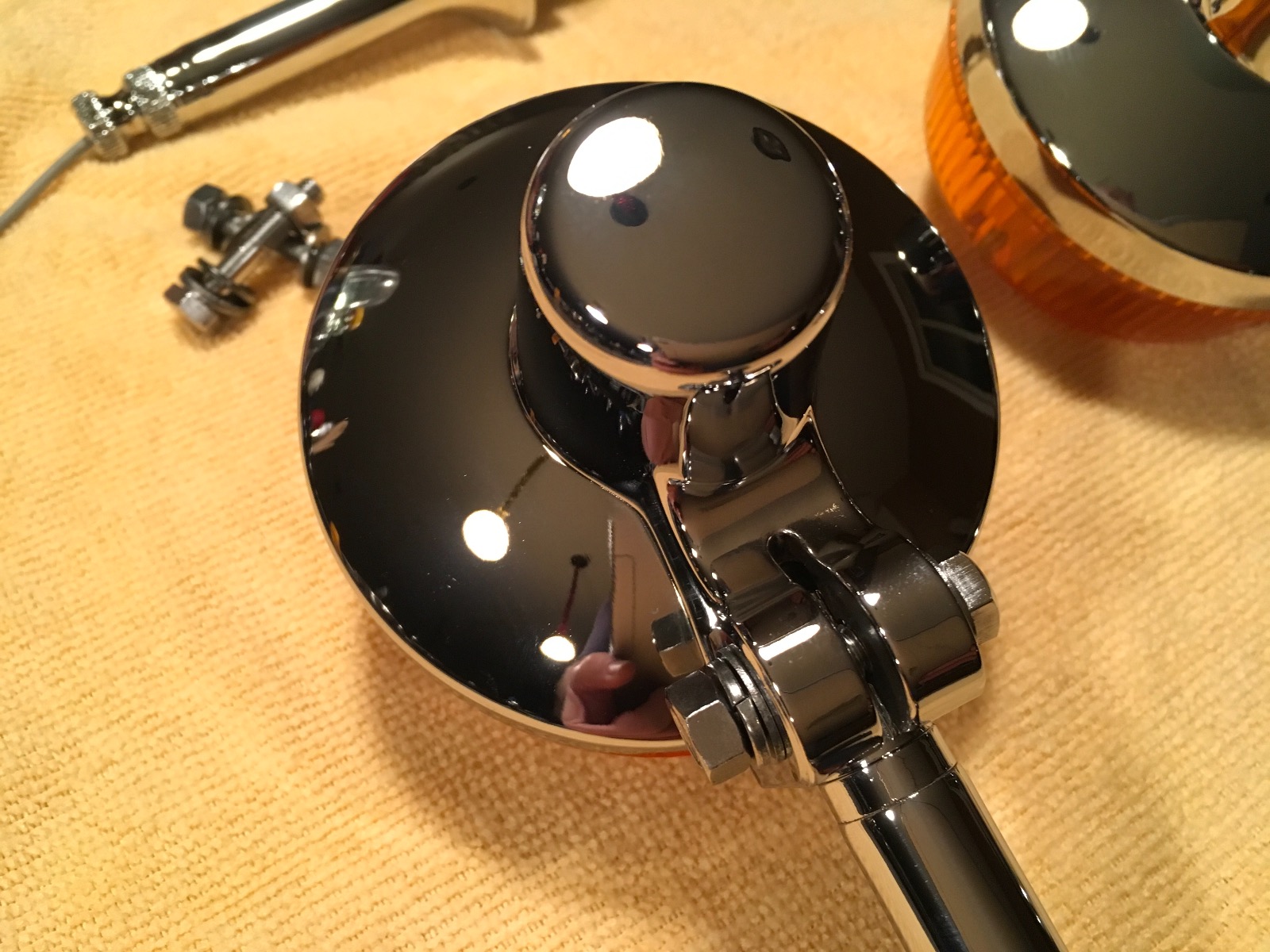 The front turn signal are built. Had a heck of a time repairing the power wire. I’m sure I’d be able to find the 2.5mm female connector but not the skinny long cover. It’s fits inside the turn signal stem. So I finally figure out how to fix them. I couldn’t find NOS stems and the original were really badly pitted. Tripp Plating re-chromed them and they look bad a$$. The turn signal and lenses are NOS. Bolts, washers and nut are original, cleaned with a dremel SS wire wheel and then polished. Waiting on the rear turn signal from Partzilla. Slow but kinda steady.