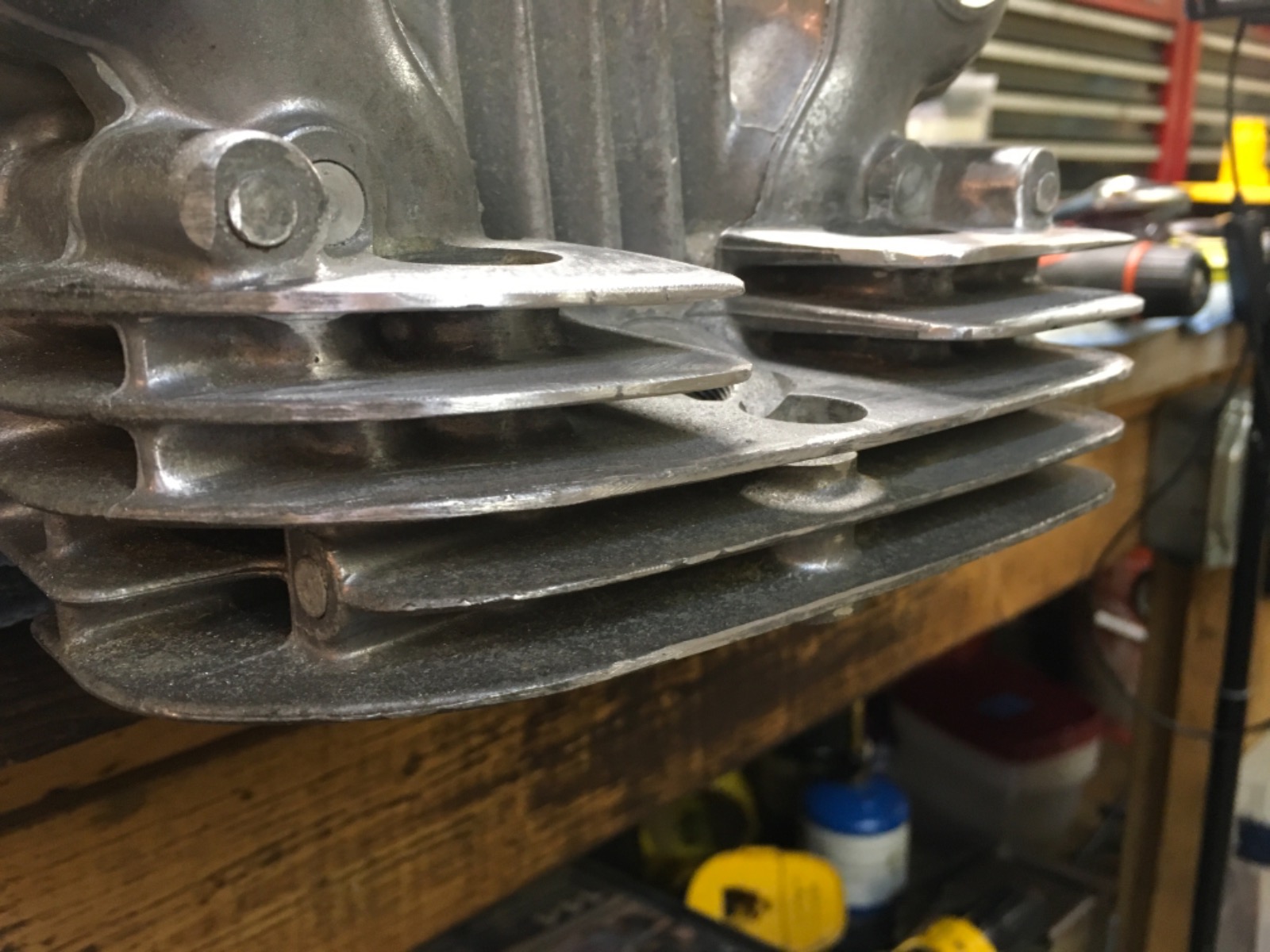 I’ve been working on the head. I found a local engine shop that had no problem welding up the broken fins. I cleaned the up today, I need to take the head back at least one more time to do a little more weld build up. They it off the be glass bead, I’m hoping that will blend in the repairs. Then to my Vapor Hone guy, and finally back to a different shop that’s been building metric engines for 30+ years.