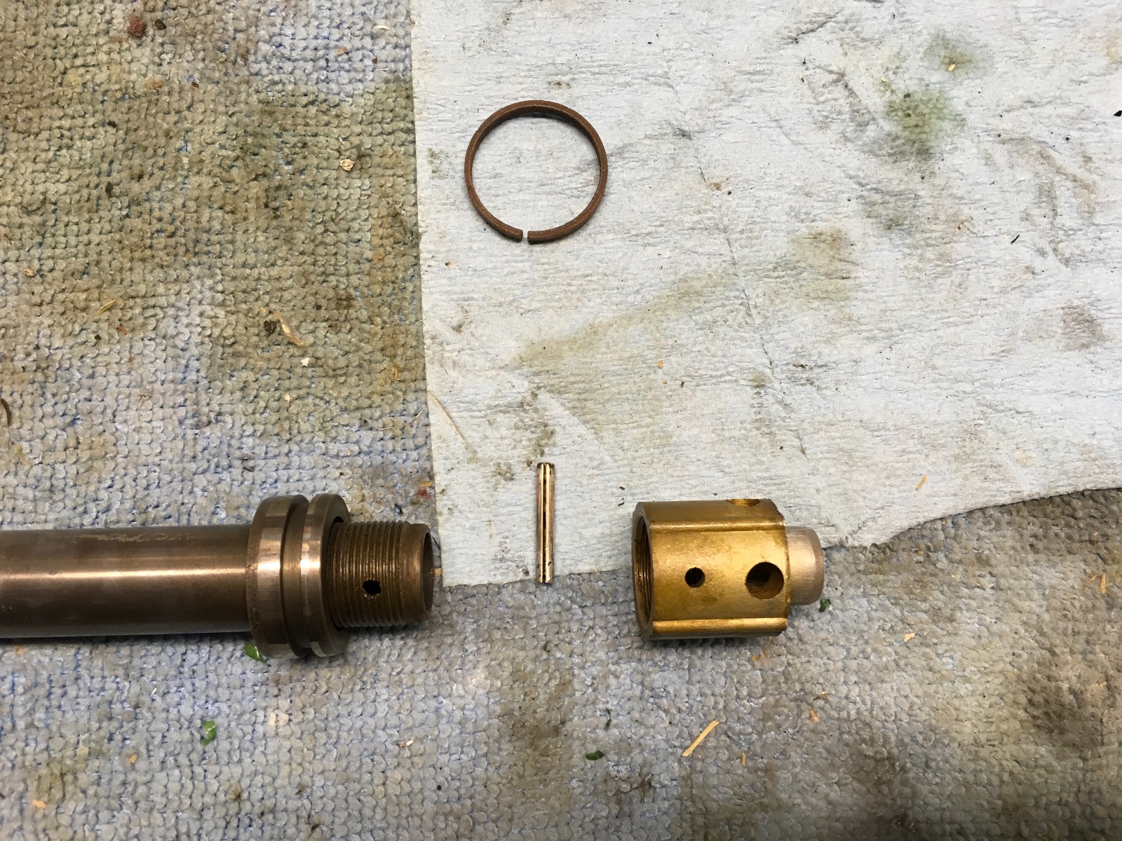 Still having trouble finding the correct roll pin for the top cap on the fork inner damper. I measured and came up with 3 x 20 mm. I stopped at a small engine repair shop and bought a couple. And to help my chances I bought a couple 1/8” x 1” and both are to big. Tomorrow I’ll try again.