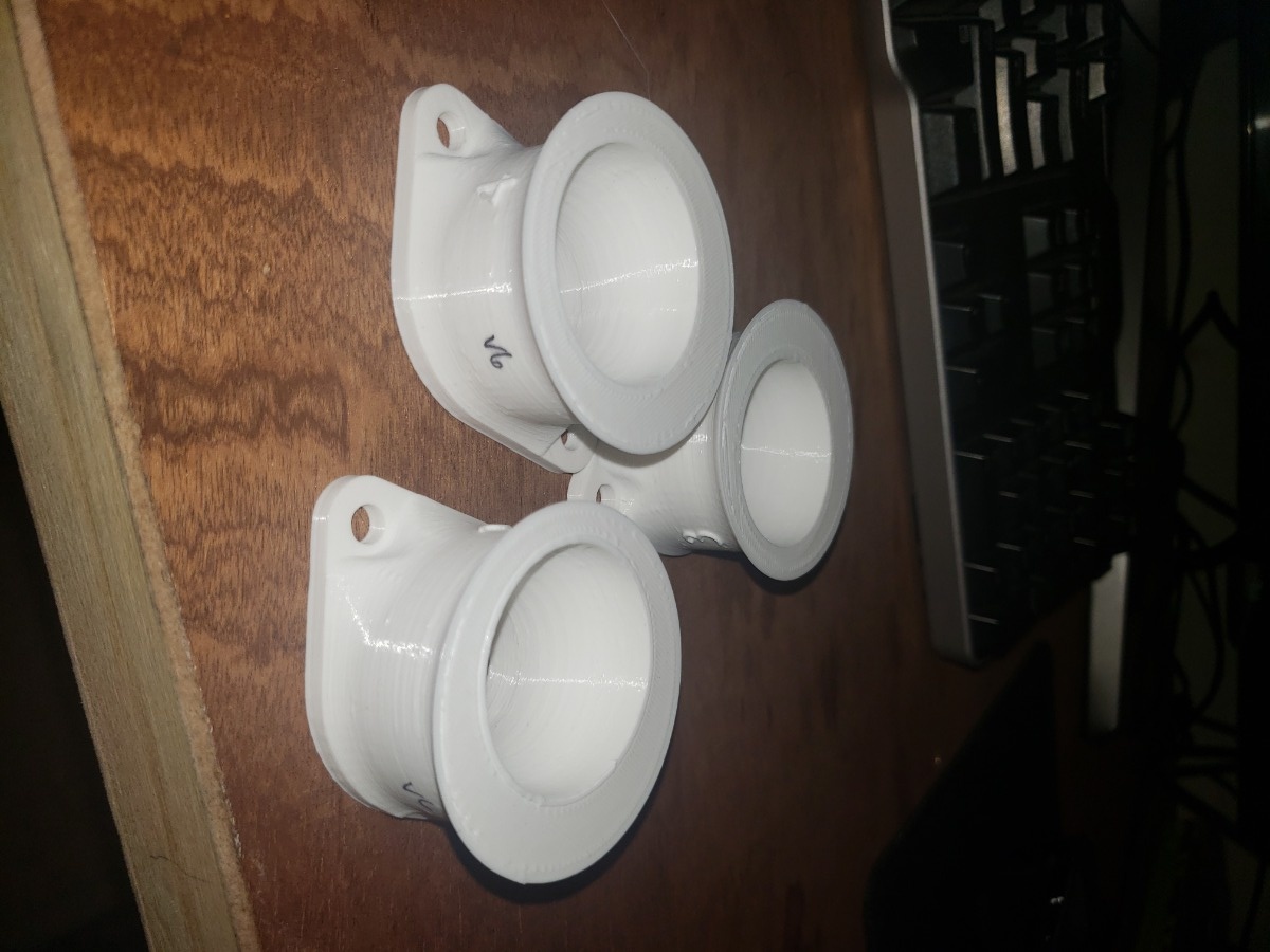 For V3, I designed the adapter with the eccentricity, added a retaining lip for the TB, bumped ID to 53.25mm, and added fillets connecting the vertical section to the bottom flange. In this version I also changed my model to have the exact same footprint as the previous carb boots. While designing V3, I totally forgot to make the opening for the TB bigger, which is why it looks different than the other versions. Oops, It'll get fixed in the next iteration.