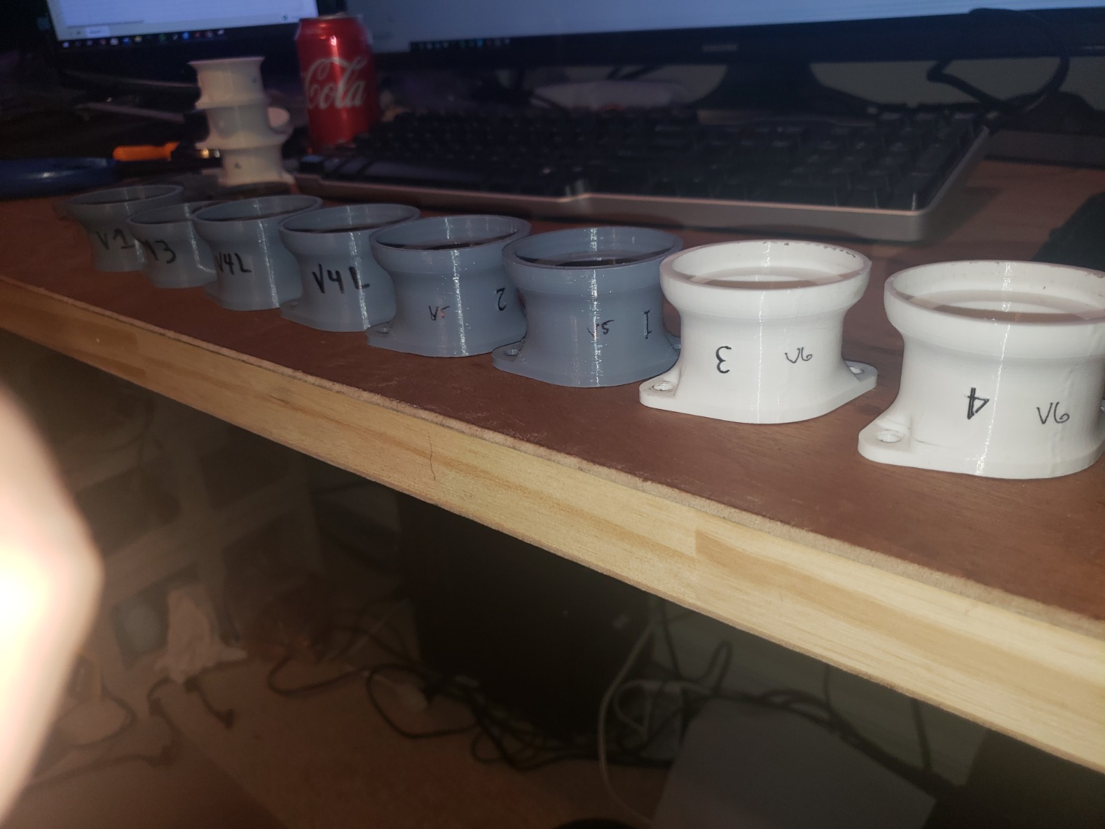 I'll start off by showing a pic of some failures along the way. Here lies a batch of V5 adapters which fell victim to a power outage and never finished. Since then, I've added power outage print resume capabilities to the printer!