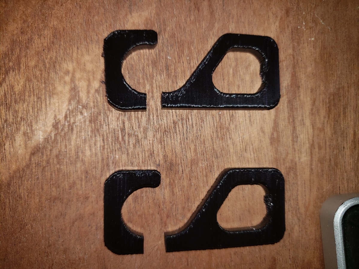 Before printing my absolute final nylon pieces, it's important to test and determine the best settings for a strong print. My adapters will at max hold a few pounds each statically and see ~10lbs of axial force when you remove the TB rack, but the layer adhesion will be a determining factor on having a sturdy piece. To narrow down these print settings, I printed a couple of carabiners at different nozzle temperatures and used a fishscale to pull them down. I found that printing at 260C gave best results. A picture of the broken temp test carabiners is below.