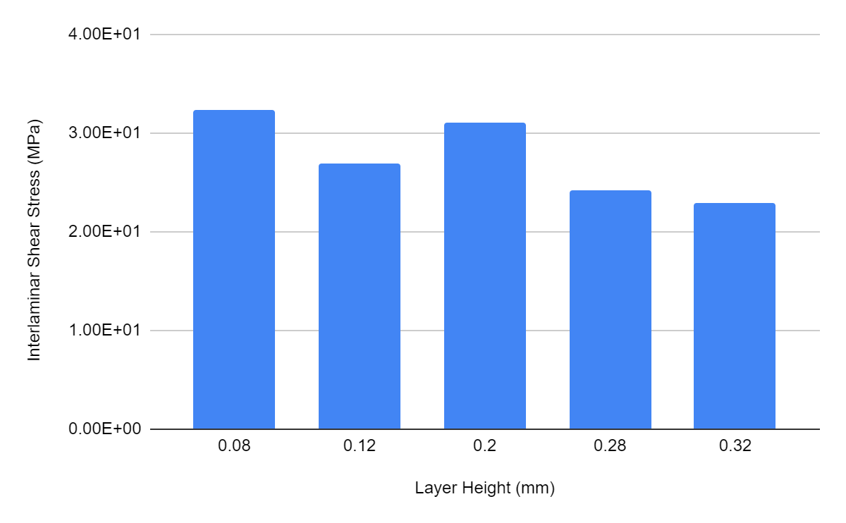 Making an excel sheet accounting for part density and breaking strength, I made a bar chart relating the max stress each part can handle. As expected, the smaller the layer height the stronger the part (for Nylon's case).