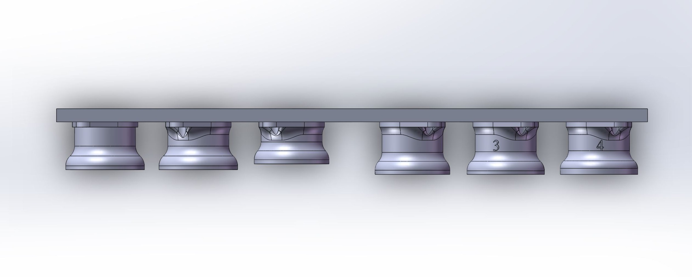 Here I'll show some proper CAD screenshots of all 6 versions side by side to give some visualization to the iterations. V1 is on left and V6 is on the right.