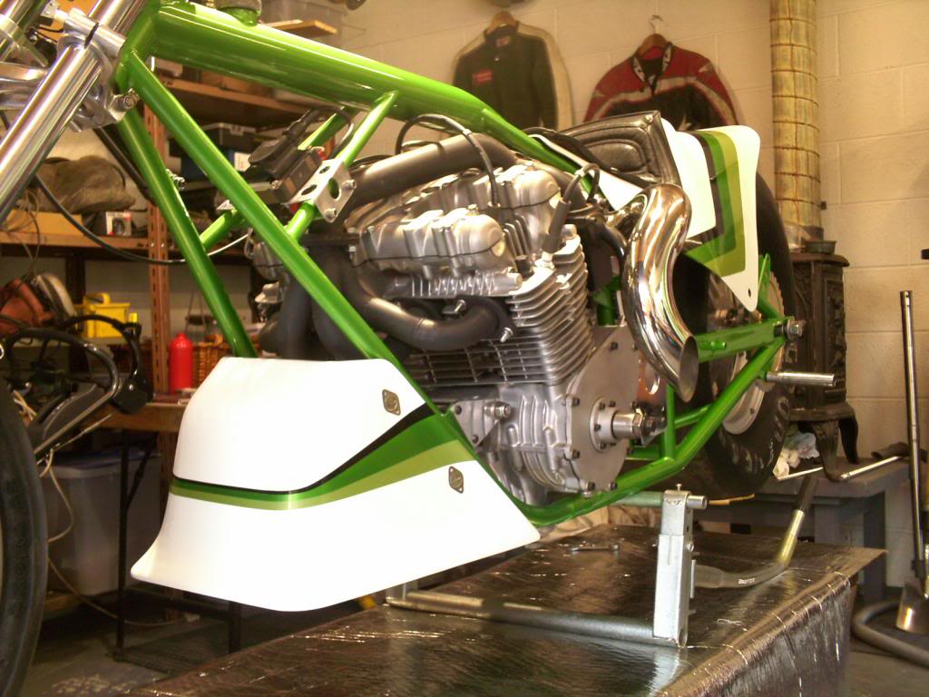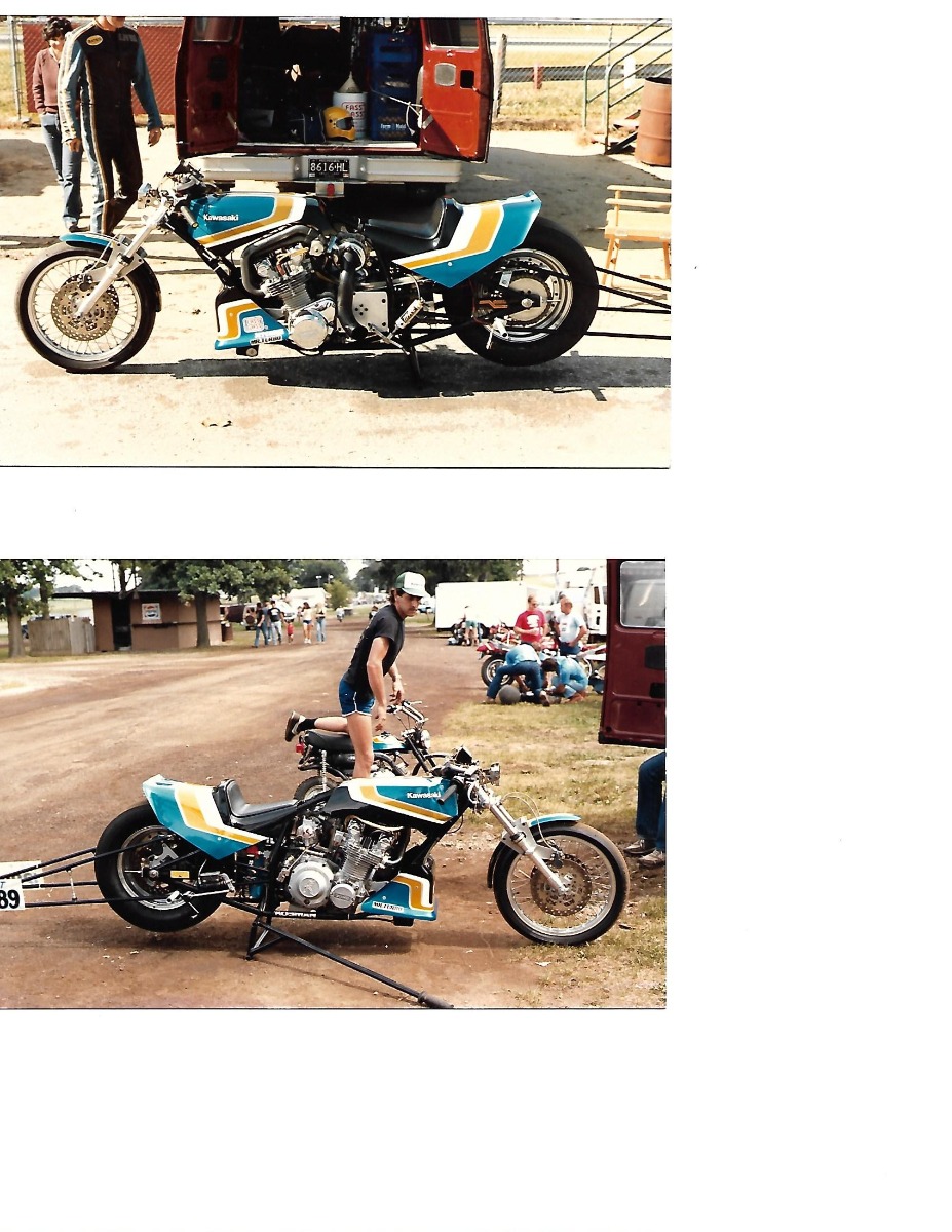 In a former life - KZ-based dragbike - CrMo car tire chassis, 1395cc, Hahn Racecraft turbo system, VP C16, Orient Express 3-spd auto, 7.80's @ 165-170.