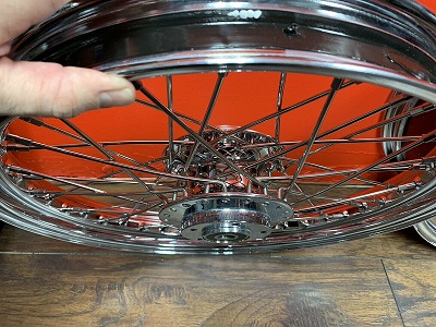 No, zoom on the spokes in the front hub, the bend is .25 inches from the hub, Maybe more. If used and someone grabs the front brake the hub will stop and the spokes will straighten and break at that bend!! That bend should be right against the hub. Look at any spoked wheel and you'll see the spoke is against the hub not a Quarter Inch away from the hub. Looks like when the spoke nuts were tightened the whole spoke is bent because its pulling from .25" away from the hub. This guy says he has sold hundreds of these OMG!! Here's a better pic from the guys ebay ad. Chris
