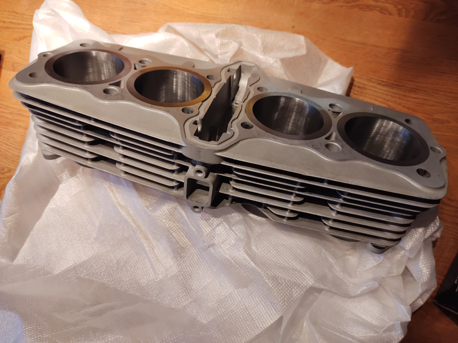 Picked up the cylinders and pistons yesterday. Took a photo of one of the cracks in the plug threads before it gets repaired, after the head was cleaned up you could see the extent of the damage. I'll post a photo when I get it back after being repaired.
