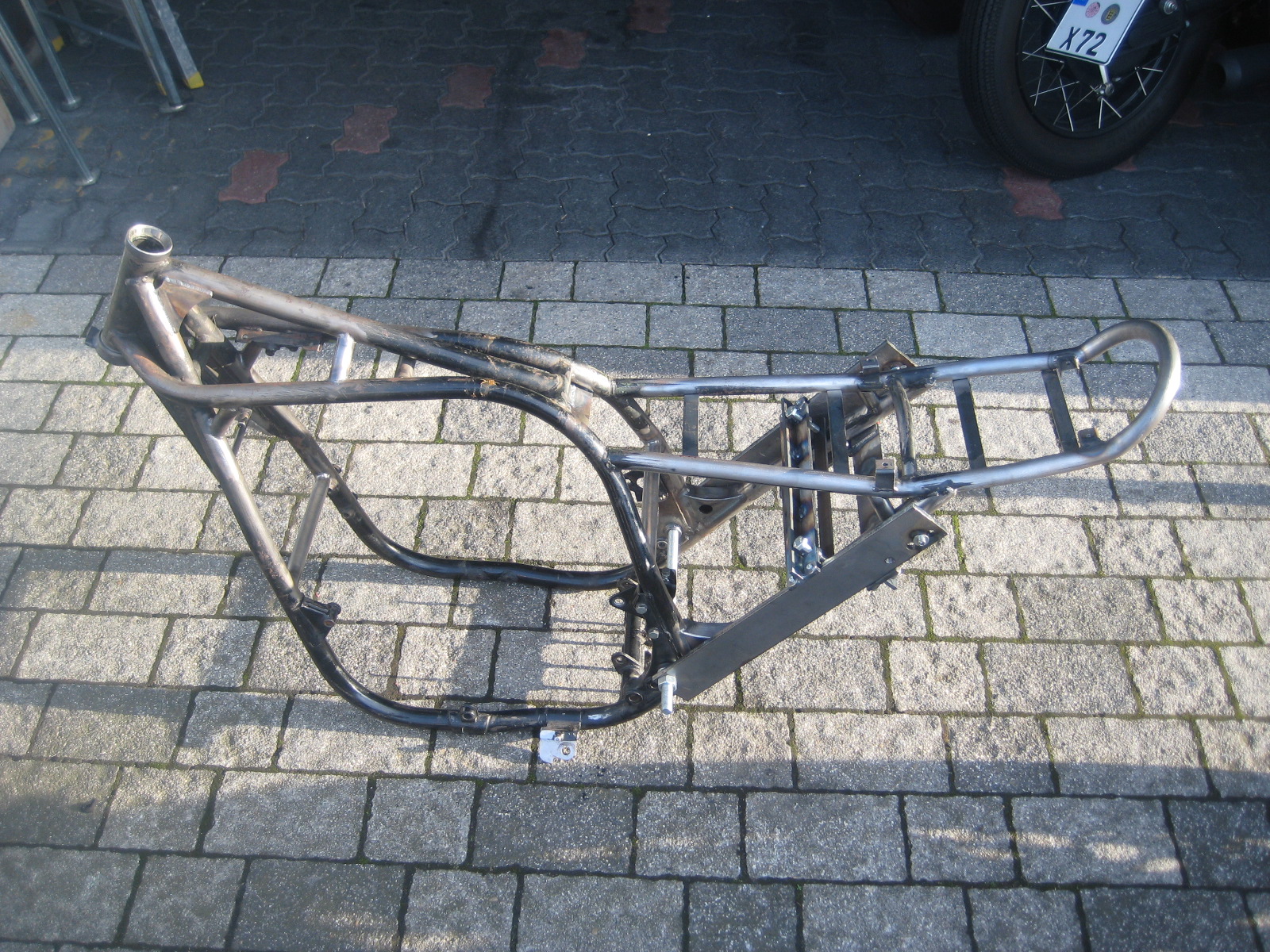 Got the frame back. The welding is OK - he didn't put too much heat into the joins and, most importantly, it'll get through the MOT. Got the garage tidied up (sort of) and I'll start working on the seat pan and a tray for the electrics over the holidays.