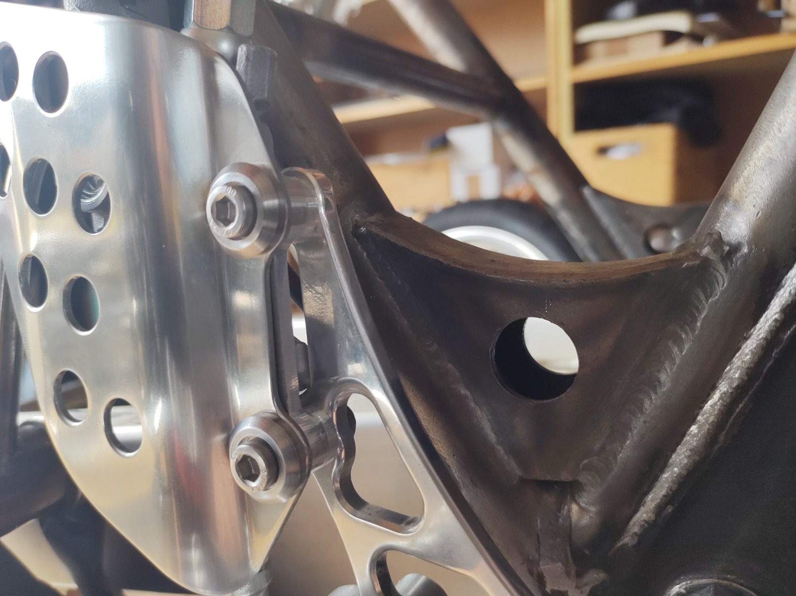 I shortened the torque bar for the rear brake and mounted the speedo sensor to the caliper: