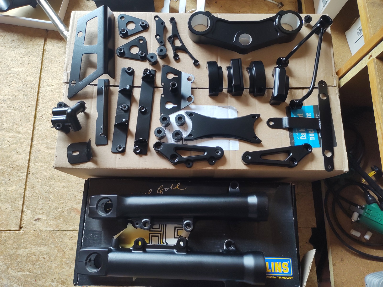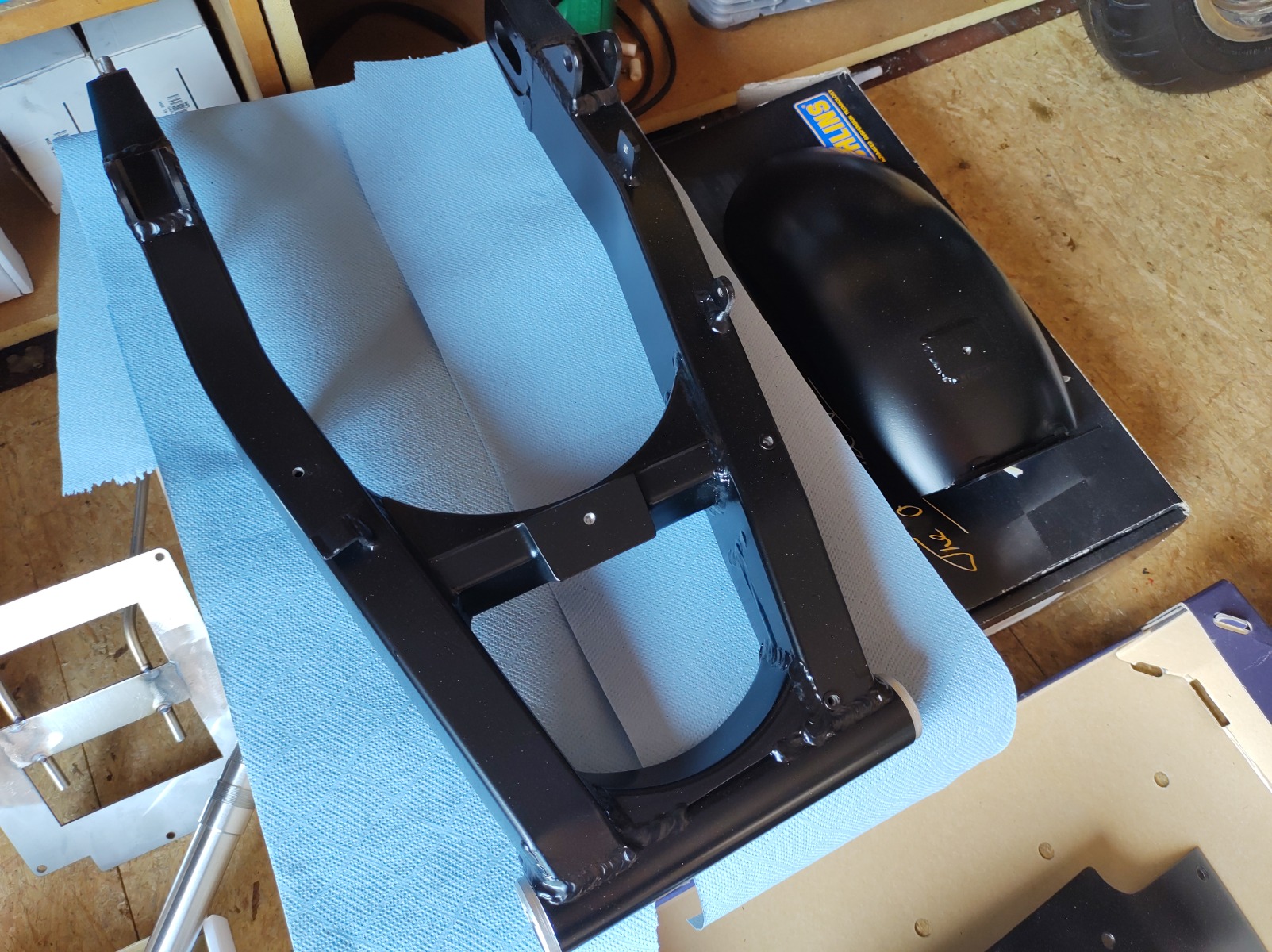 - Got the rest of the little things ticked off the list as well: side stand stop on the frame, reduced the steering angle slightly, mounting bracket for the RFID sensor, ... just need to bead blast a couple more parts and all that's left is a lot of painting.