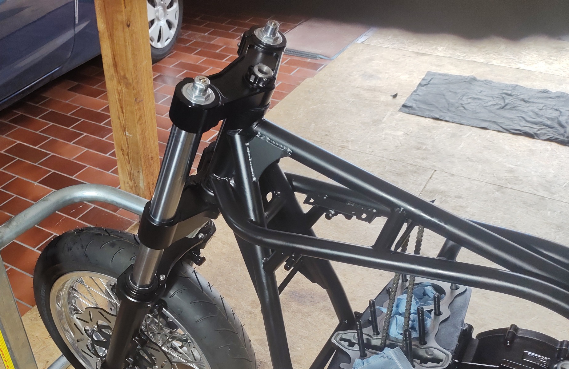 Had a bit of spare time today so got the swingarm bearings in and the back wheel on. Didn't have enough time to work on the engine - valves/cams are up next so I can't be on a clock like I was today.