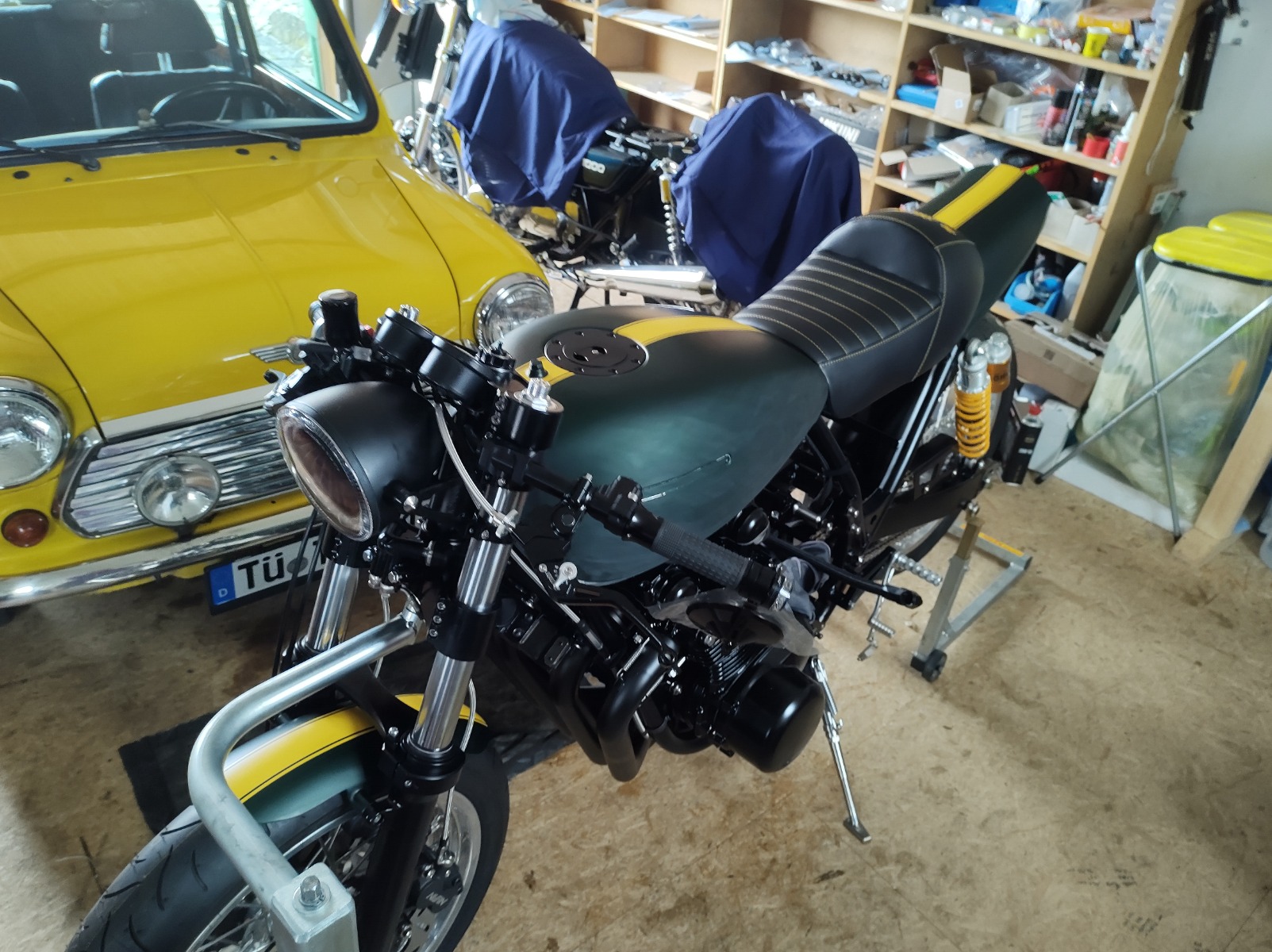Very very very cool bike.This is the look im aiming for when i in the future going to build a kawacafe