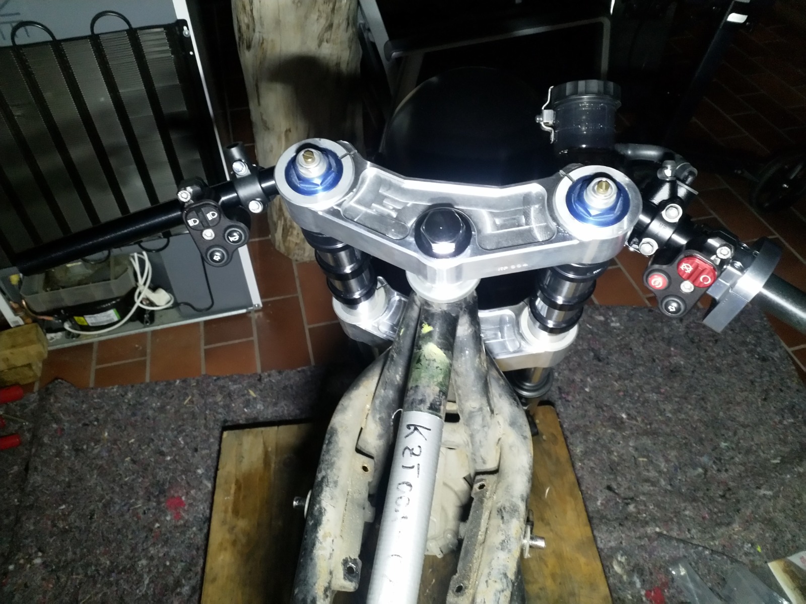 Assembled the triple clamp, forks, headlight and clip-ons :