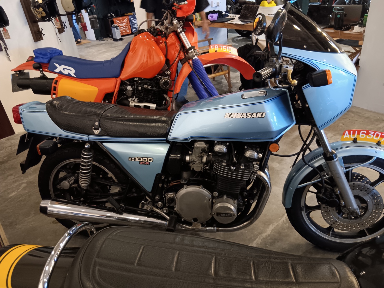 Sadly, my KZ has still not made the trip to Singapore. This country has some idiosyncratic regulations. For one thing, they don't want anything over 10 years old being imported unless you're willing to pay a tremendous fee. Also, to put any machine on the road you need to pay a tremendous fee (about $8000 US). Also, they have a tiered motorcycle license system that limits you to under 200cc's for a year, then under 400 cc's, then whatever. You can get around this by getting confirmation from the home DMV that you did your testing on a bigger bike, but the Michigan DMV doesn't have any such record from the 1980's, when I took that test. Also, you can only operate on a "classic" (more than 10 years old) plate for 45 days a year. There are still other issues, so I'll just have to look forward to returning to my bike in the summers.Speaking of Singaporean red tape, while I was waiting for my work pass to come through, I stumbled upon this bike shop: