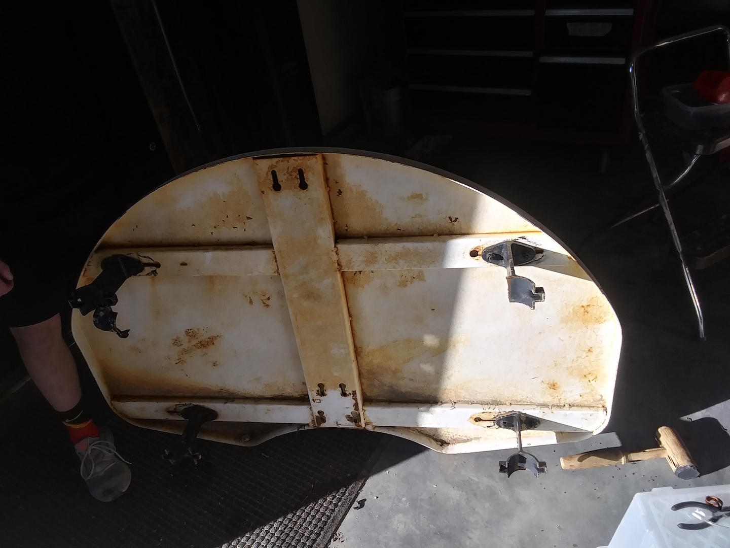 That got around the inner fender. I mocked it up with a piece of ABS, but I didn't have any suitable steel tubing, and ultimately decided it would be better to build a flat bridge out of sheet metal. I harvested the metal from this old backboard: