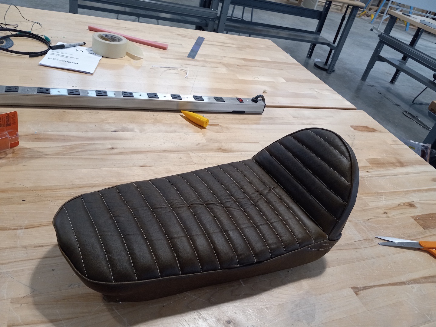 I''ve got a bunch of leather left over and I'm feeling relatively confident, so maybe I'll make my wife a skirt that matches the seat and see if I can talk her into a cheesecake photo session once the machine is finished.
