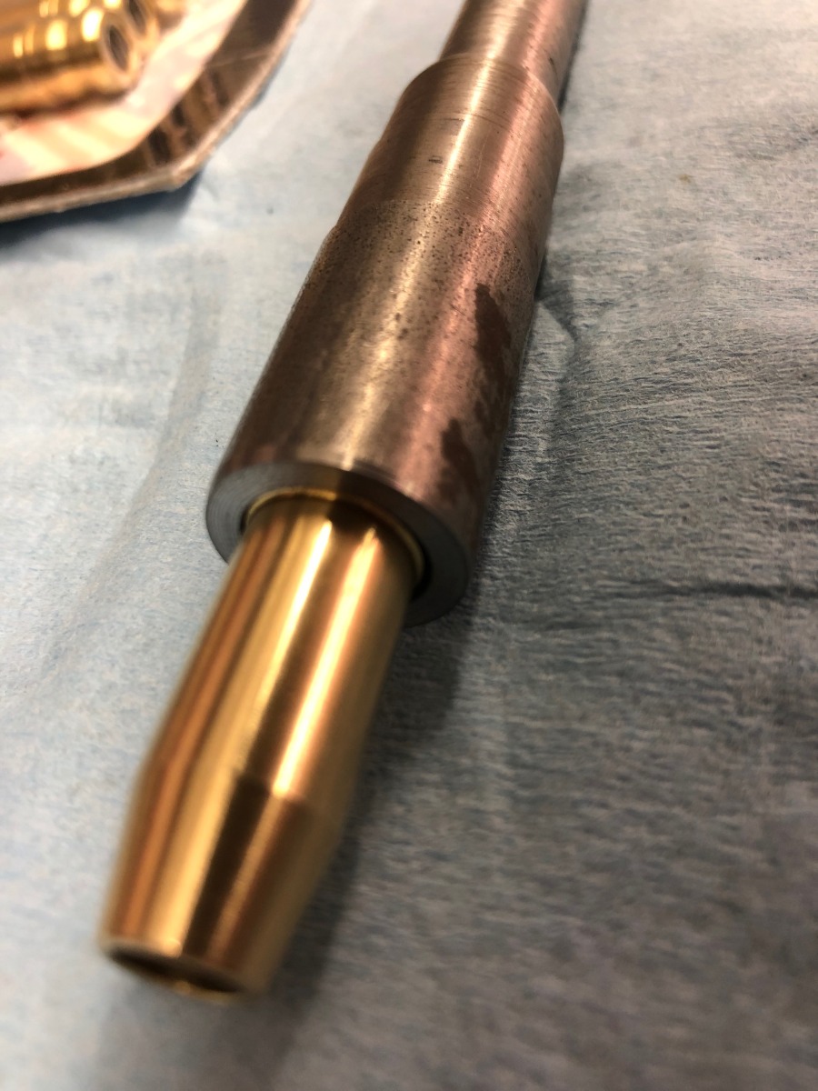 Now installing new ones? Hmm. I really scared of over-pressing. So, what I did - I machined sleeve for my pressing shaft. This way this sleeve will stop on a head body making it precise and positive stop when new stems will be pressed in.